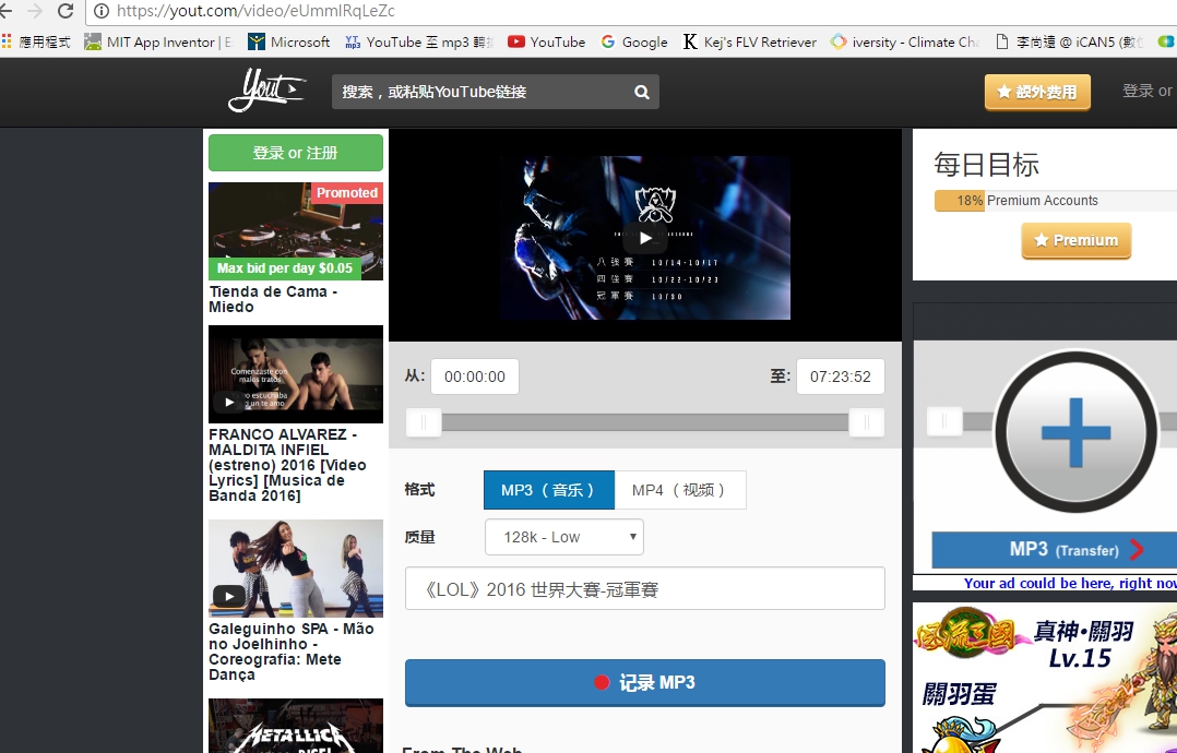 2016.11.02 下載Youtube影片或音樂 網路資訊 Tweet Youtube是大家常常使用的網站 不管事聽音樂還是看影片 網路上也有許多下載影片和音樂的軟體和方法 不過最快的方式就是直接從youtube上下載囉~ 首先:把網址上 youtube後面的 ube 刪掉按Enter 就會跳到這個畫面 接著可以選擇下載MP3或MP4檔 還可以自己選擇要下載的時間點 這樣就是Youtube最方便又最快速下載的方式啦~ 希望大家會喜歡~~ 相關