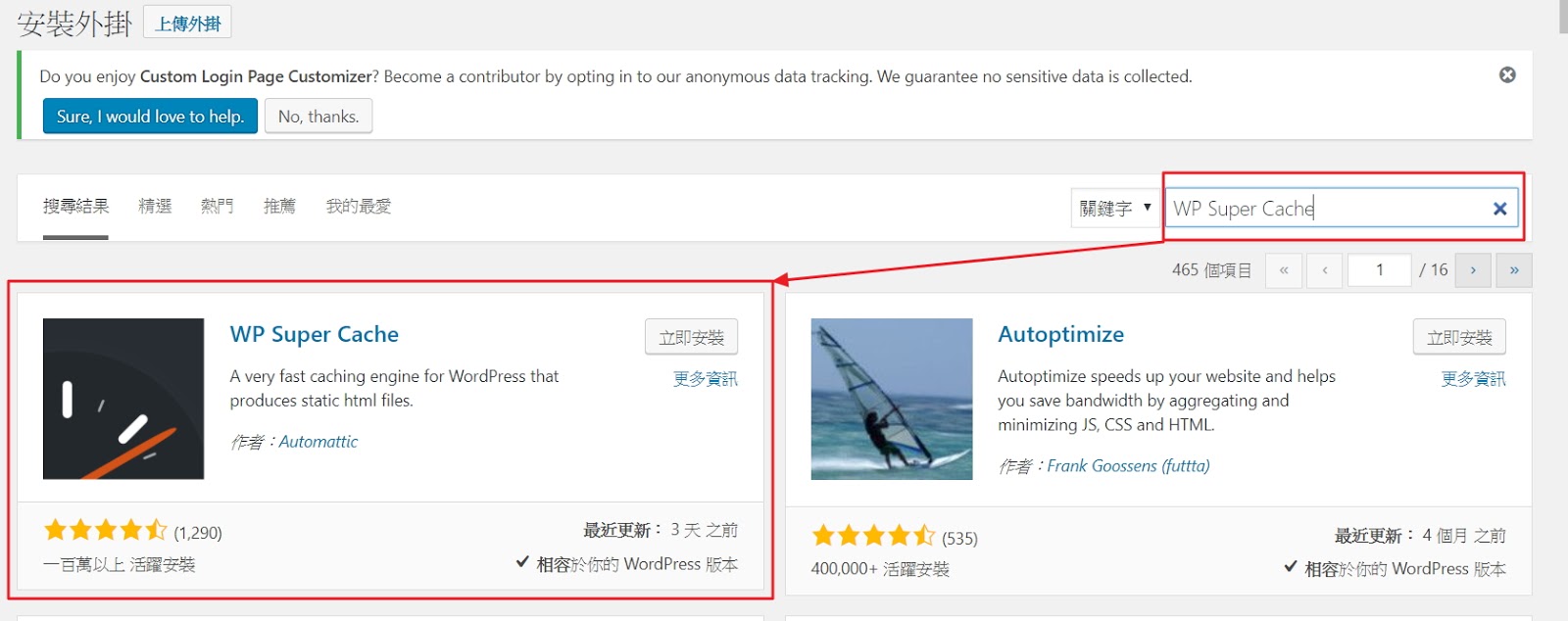 WP Super Cache是一個老牌的「快取外掛」,幫網站清除不必要的資源