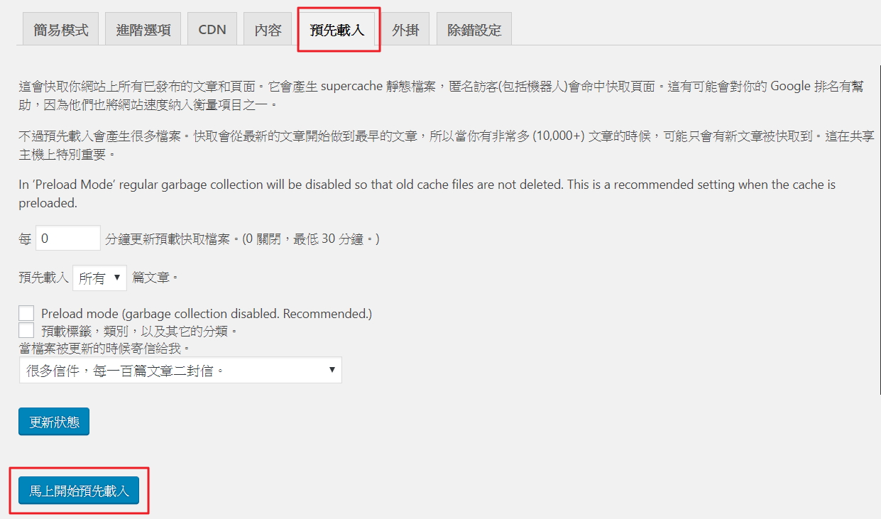 另外在「預先載入」的地方,可以點選「馬上開始預先載入」