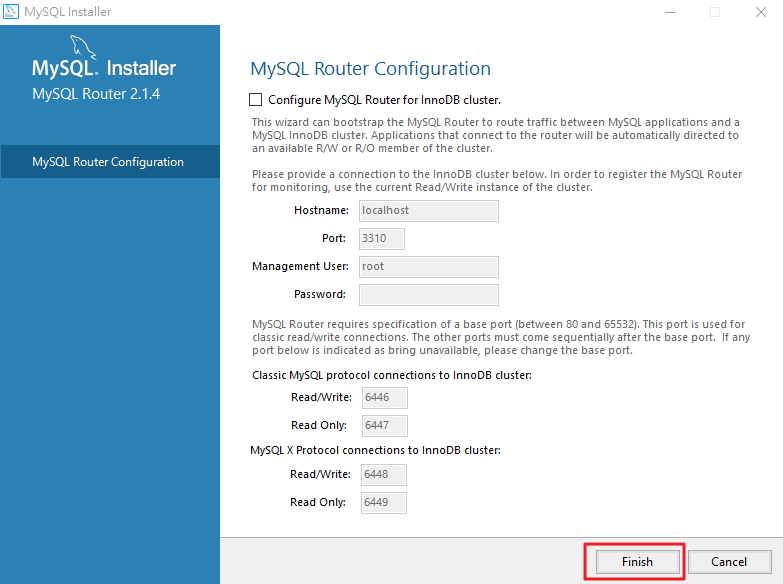終於到最後一步了~點選「Finish」就可以開始使用MySQL
