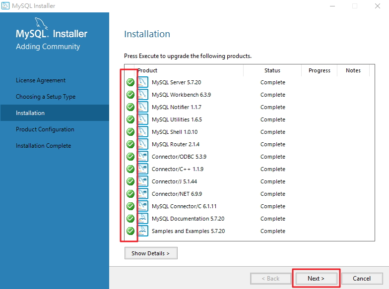 安裝完旁邊會出現「綠色」的勾勾,就可點下一步