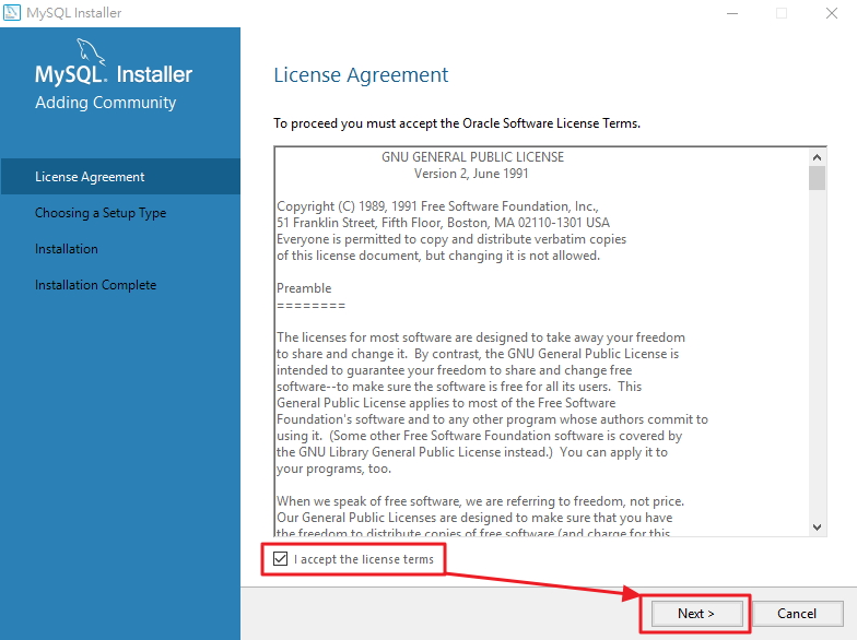 有五種版本可以選擇,這裡選擇安裝「Full」全部完整的MySQL