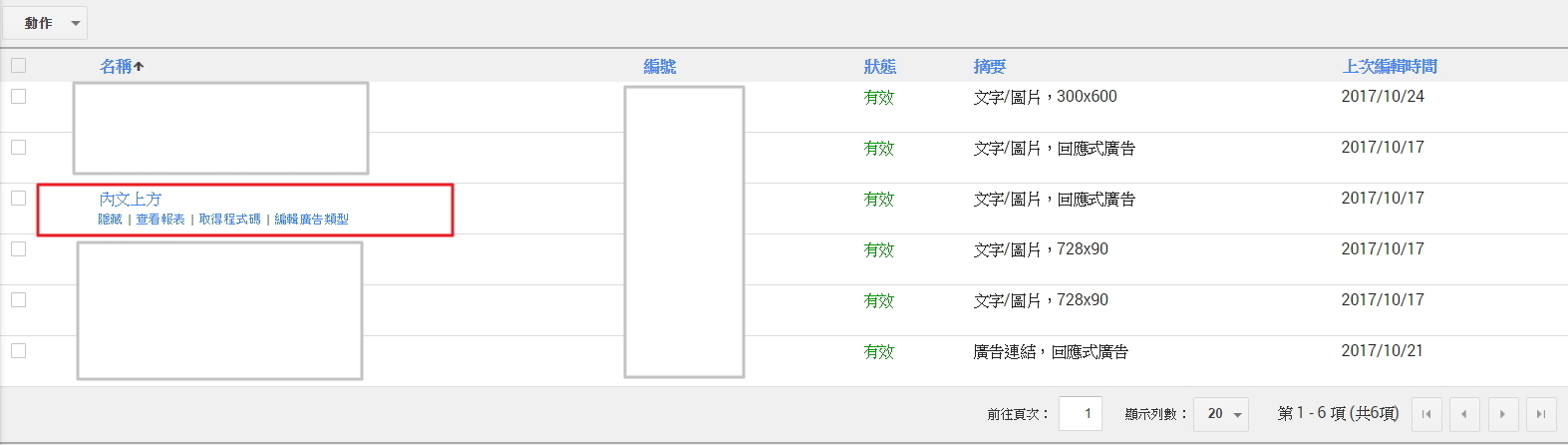 回到我的廣告的地方可以看到剛剛新增的廣告單元