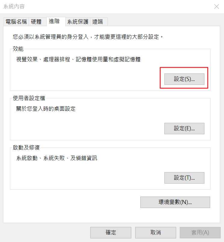 找到選「進階」就會看到磁碟機分頁檔案大小,居然有9G多