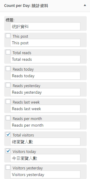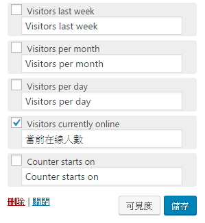 當前頁面瀏覽人數、每星期人數、每月人數等,種類相當多,可以選擇需要的使用