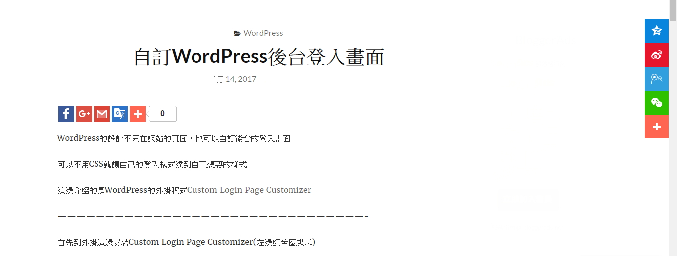 在WordPress中發文後如果別人喜歡你發的文想要分享給大家