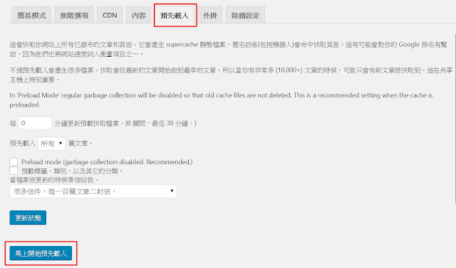 另外在「預先載入」的地方,可以點選「馬上開始預先載入」