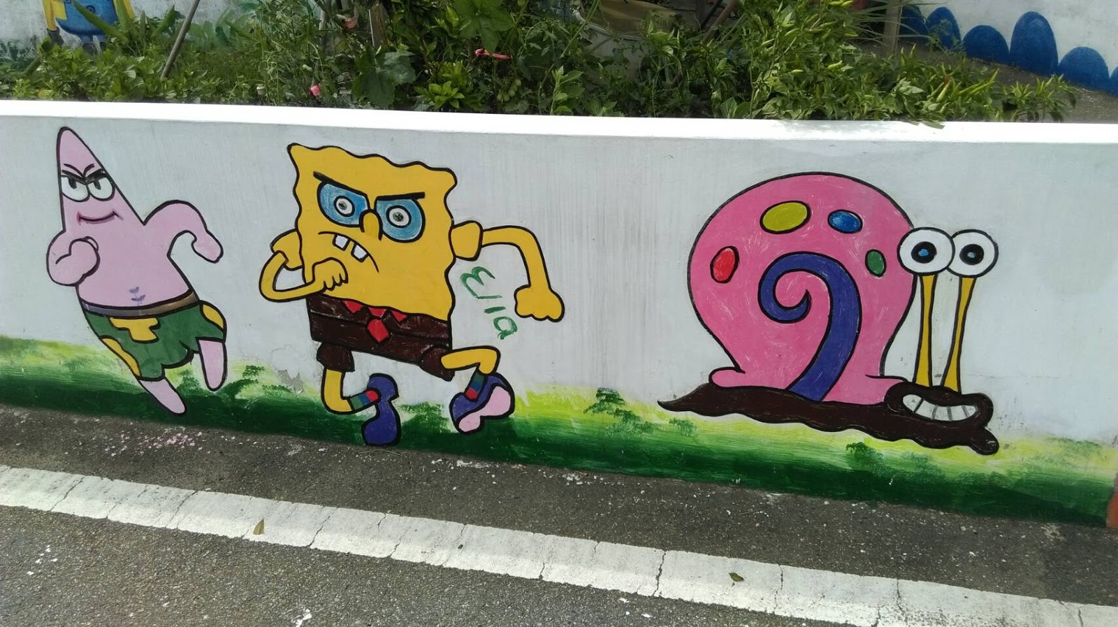 大家在牆上彩繪完有些人也會簽上自己的名字