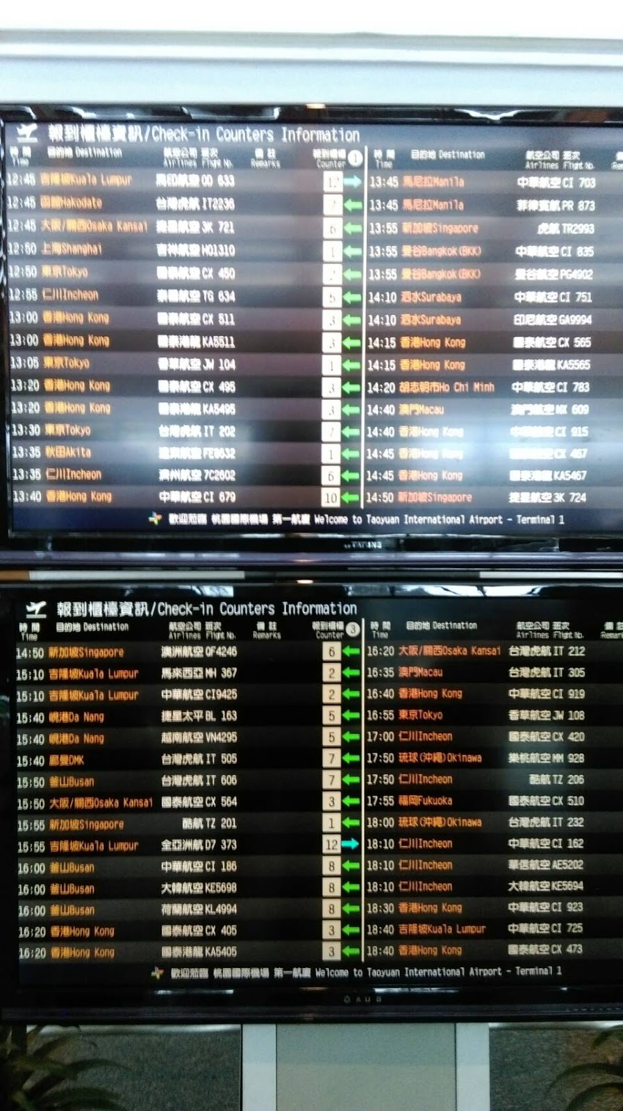 下圖左邊是班機表,因為閒來無事就好奇去看看有飛往那些國家的班機