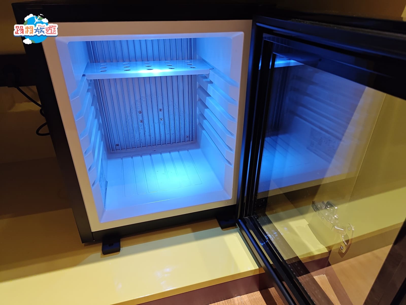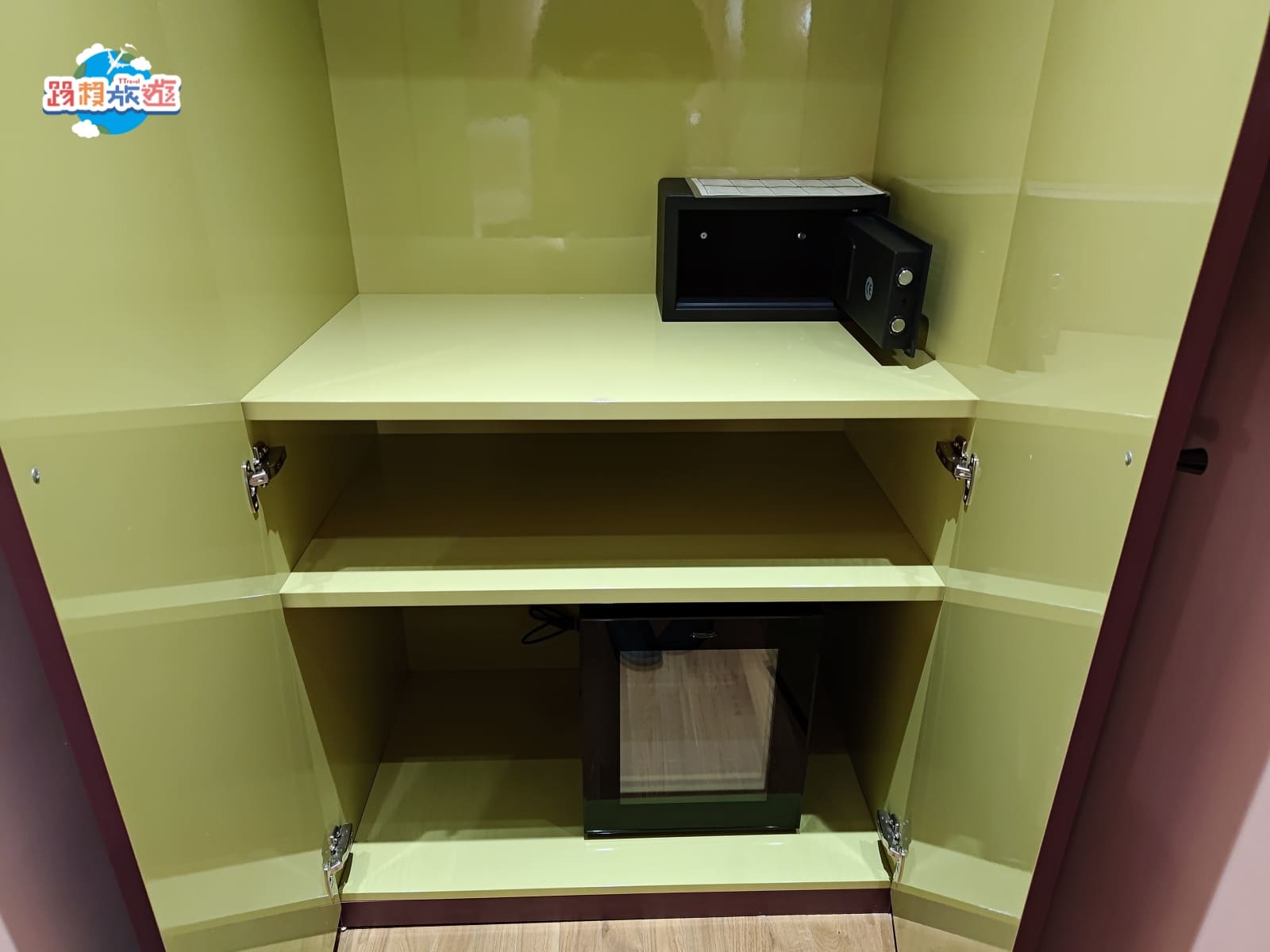 最下面是小冰箱,裡面都是空的可以自由擺放食物或飲品,不過放在衣櫃裡面倒是有點特別XD