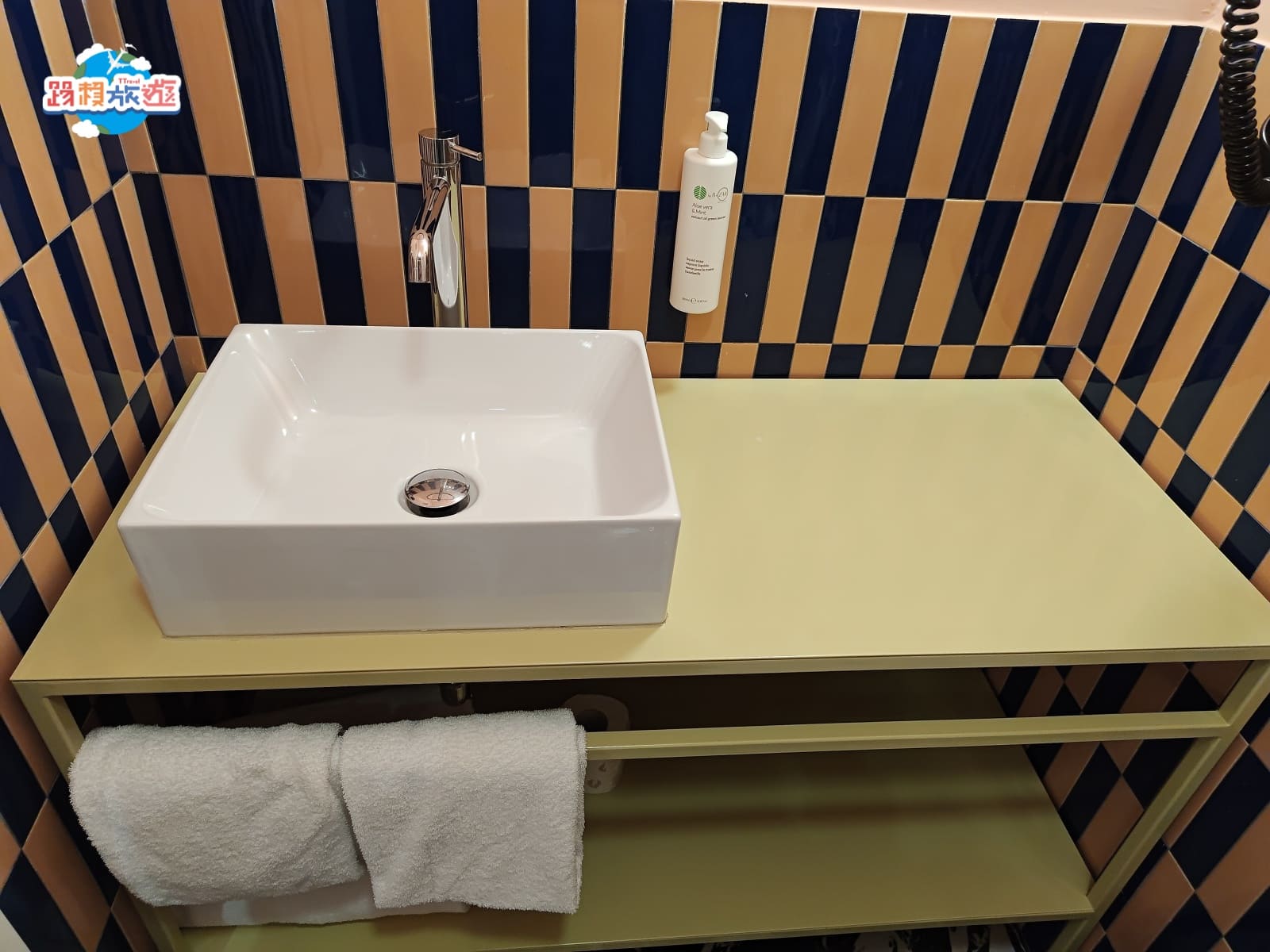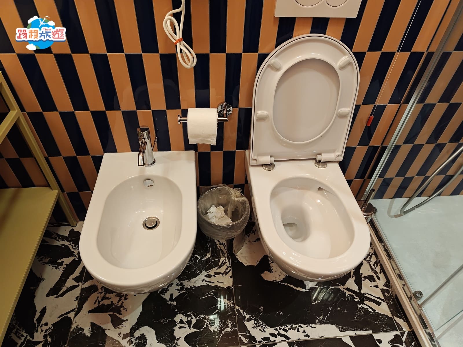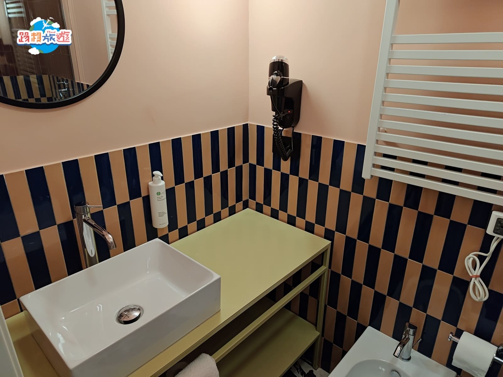 淋浴區是完全乾濕的設計,應該也是大部分飯店的標配,不過有注意到牆壁還有額外鋪磁磚,可能這樣的設計比較能防止潮濕發霉