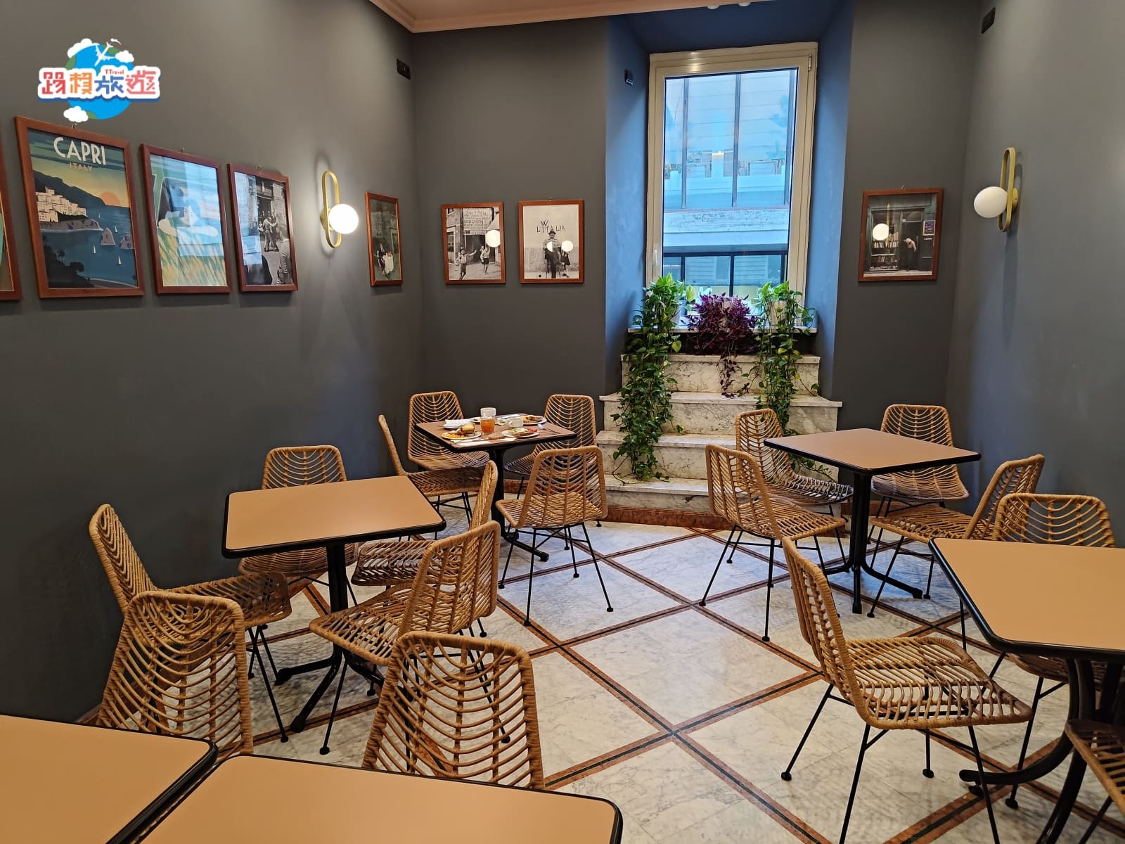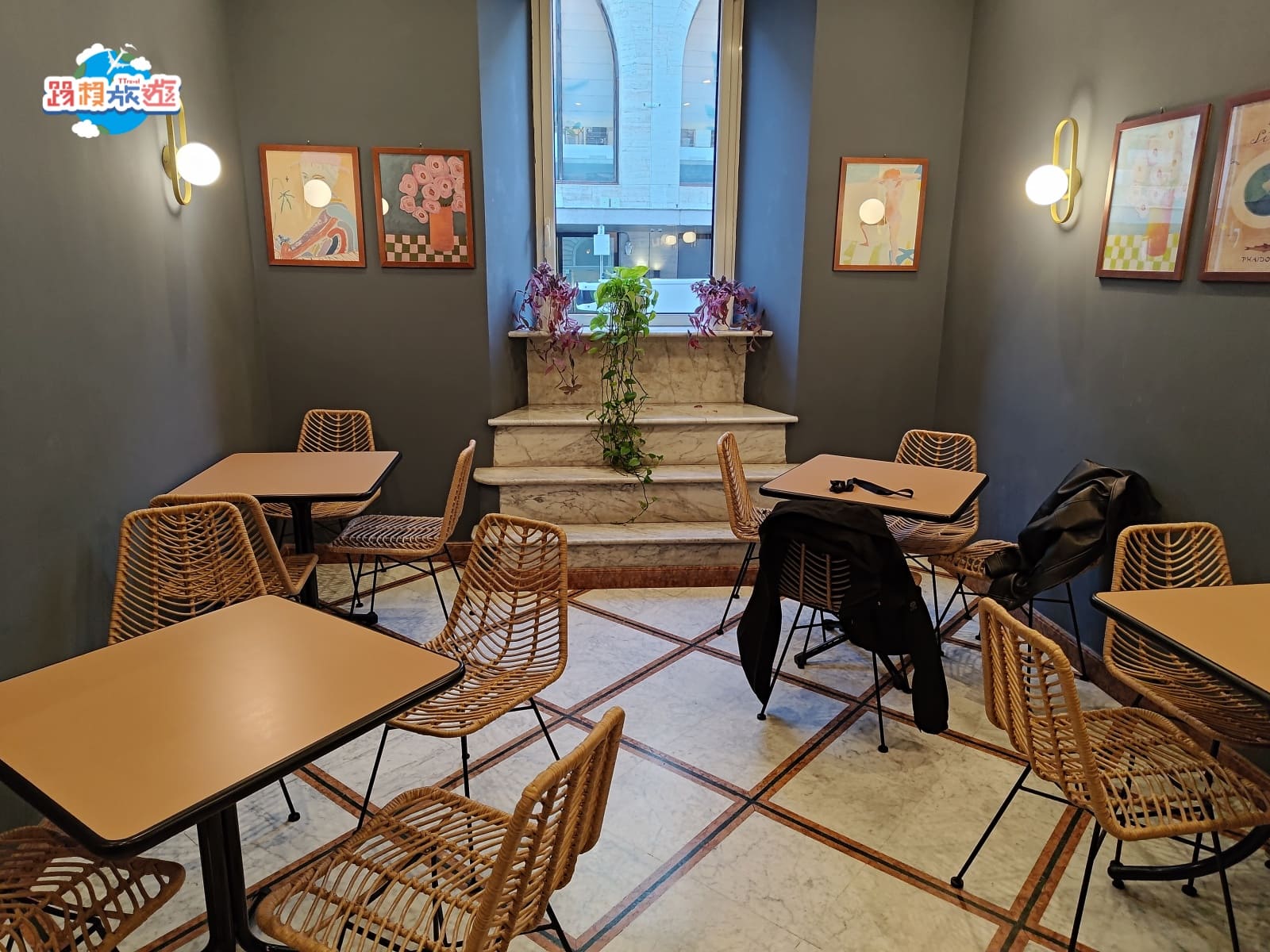 座位的區域有兩間,牆上都掛滿藝術作品可以欣賞,雖然是在熱鬧喧囂的羅馬特米尼車站旁,但餐廳的氛圍卻給人一種溫馨愜意的感覺