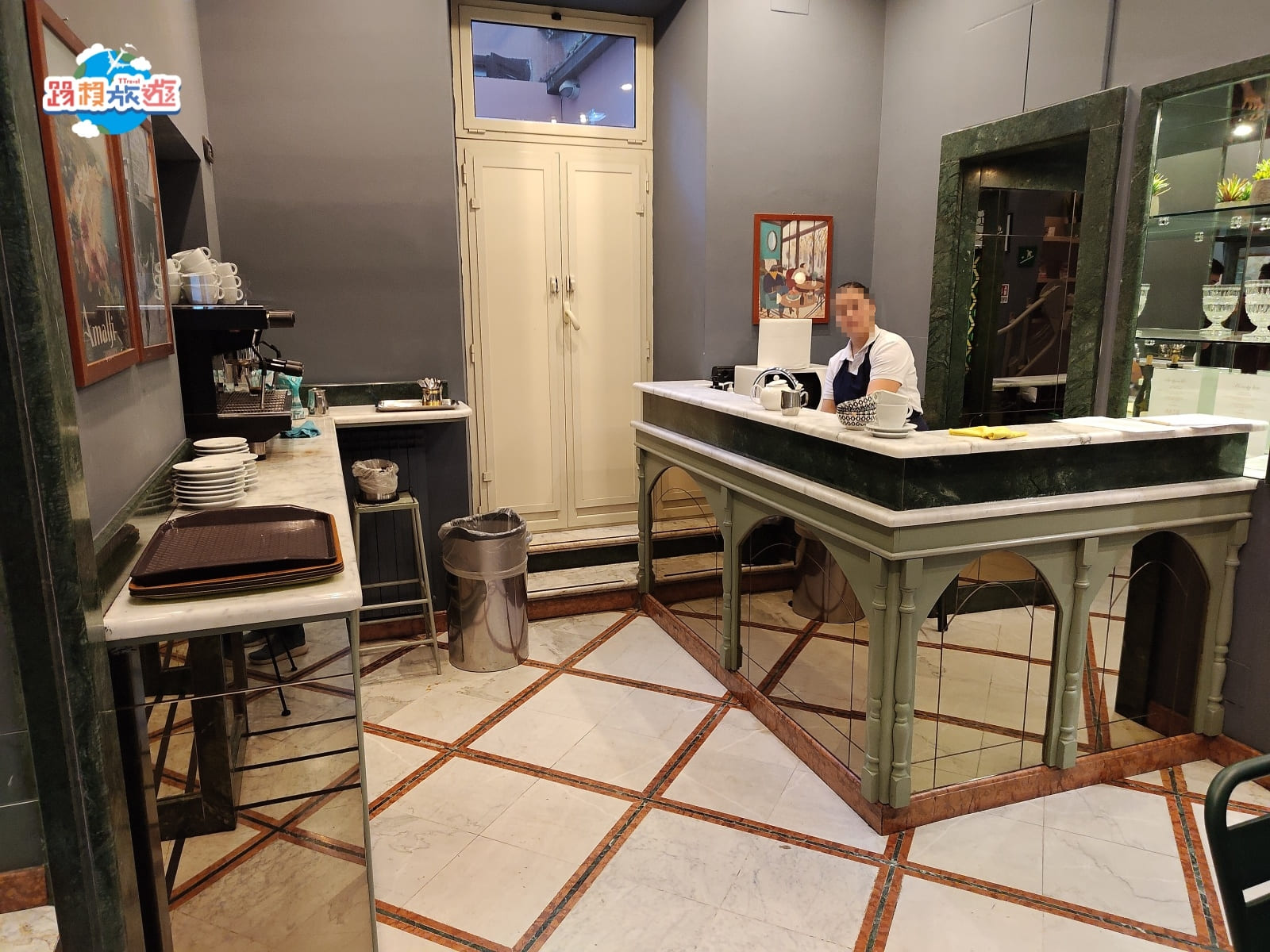 在座位區的中間有咖啡機,但建議來到義大利可以直接跟吧台點手沖咖啡,喝起來會更有味道