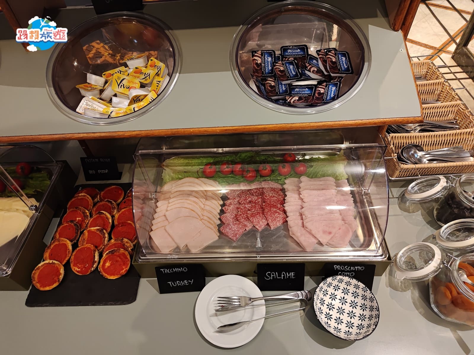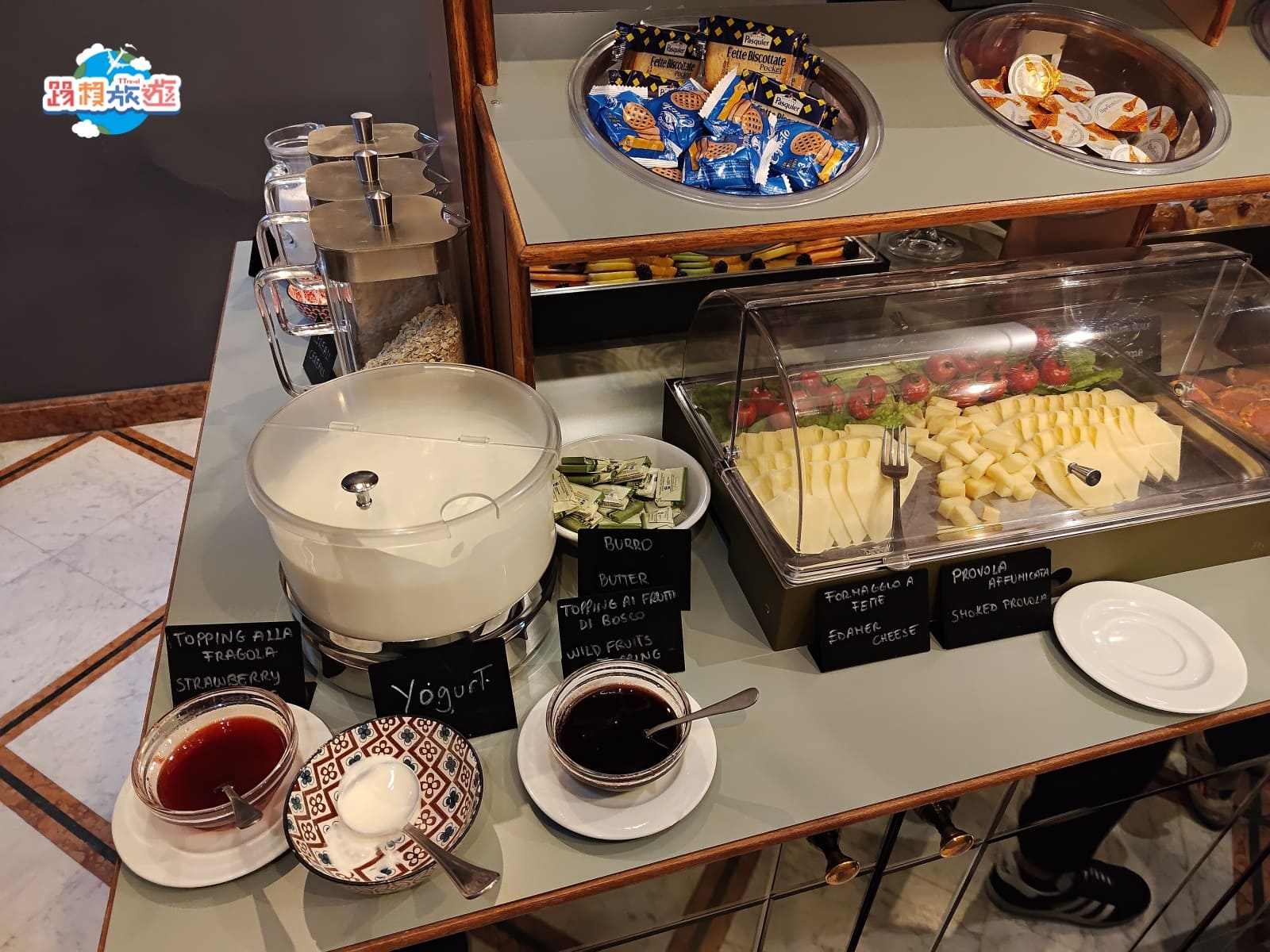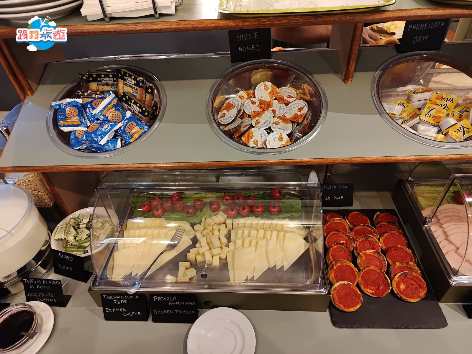 中間是麵包,旁邊有烤麵包機,第一次在歐洲品嘗麵包真的都非常紮實,吃個幾片會有明顯的飽足感
