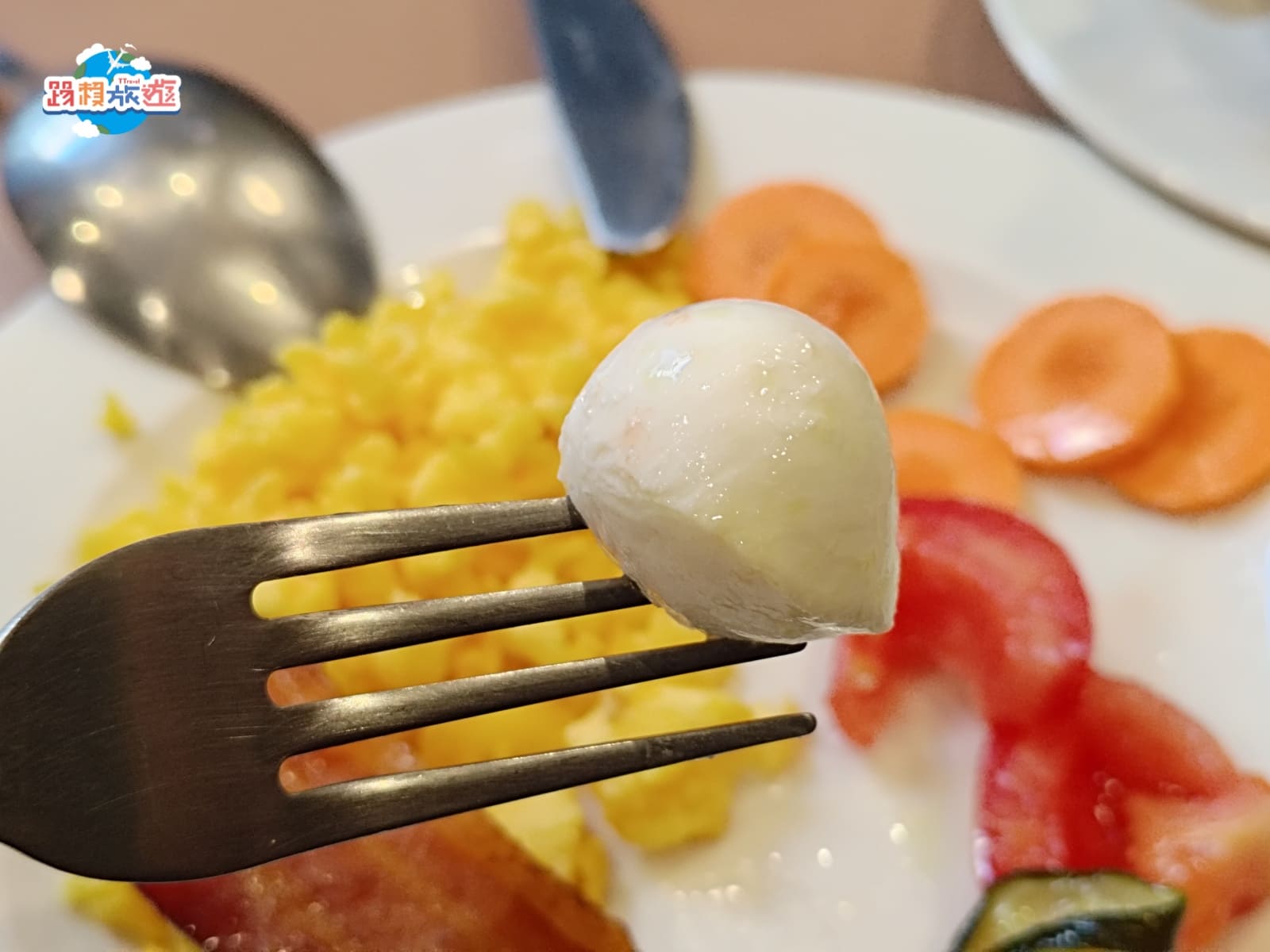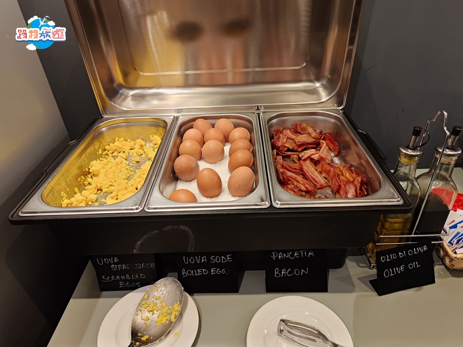 中島後方還有一區靠牆壁的餐點區域,有炒蛋、鹹蛋和培根