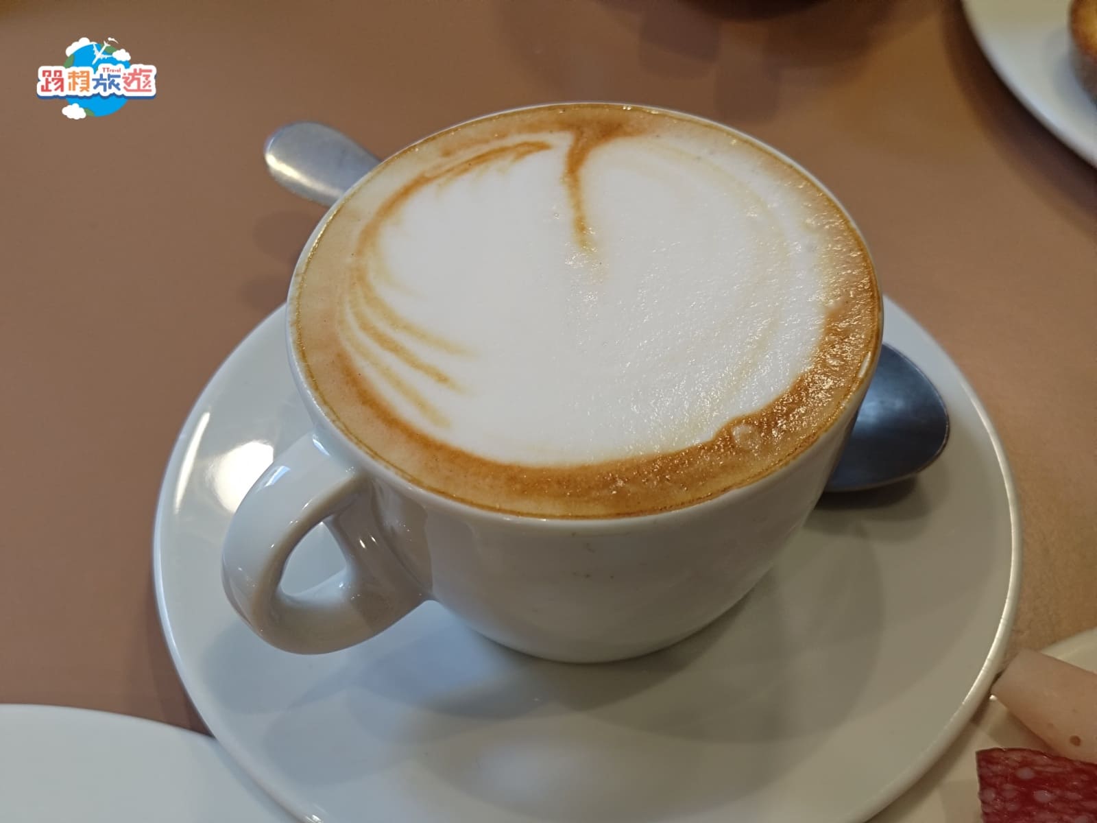 咖啡點的是卡布奇諾,上面還會有拉花,另外亞洲房客來到這裡建議可以認識一位來自「菲律賓馬尼拉」的早餐服務人員「GIULIO D.C.」,是一位非常 Nice 又熱情的菲律賓人,拉花就是他特地做的,還會簡單的中文、日文、韓文,也會提醒我們到歐洲要注意哪些地方才能玩得更愉快。