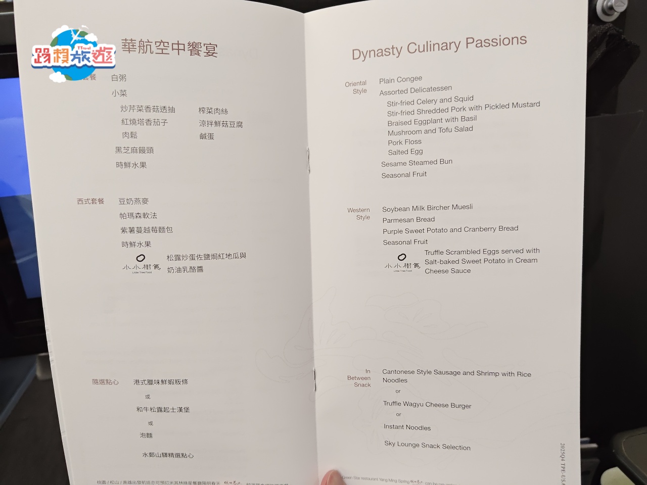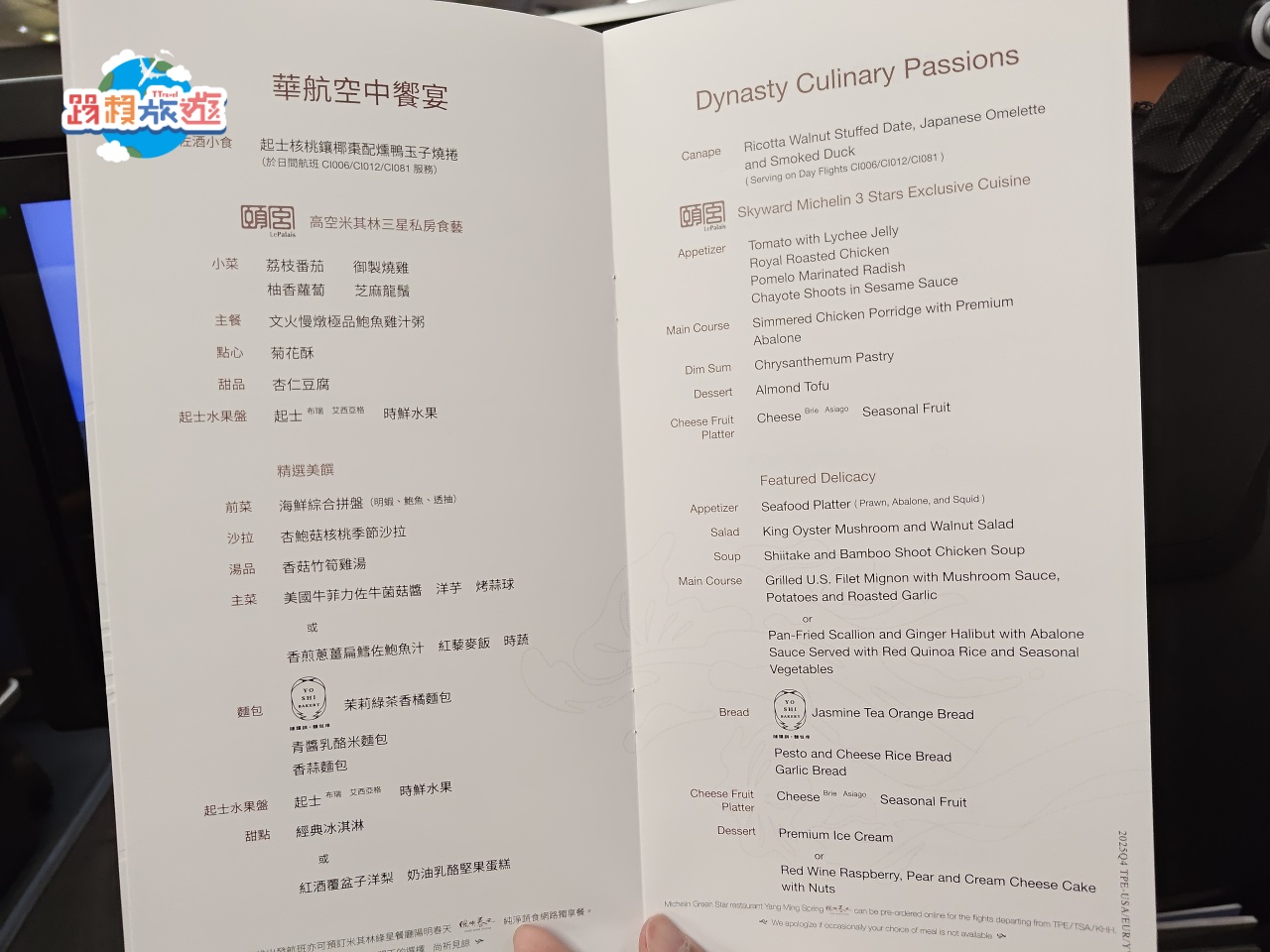 搭乘商務艙建議可以提前先上網預定餐點,除了選擇比較多樣外也會有獨特的餐點可以選,今年主打的是「頤宮」的米其林三星料理,看到米其林三星就讓人眼睛為之一亮,不過因為主參是粥為主所以後來就改點別的XD