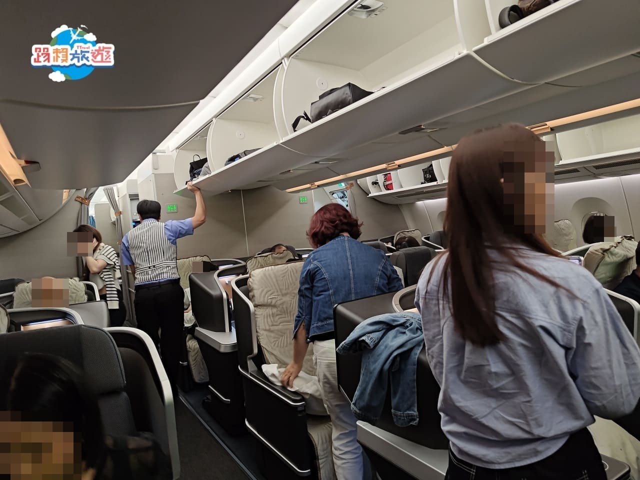 因為是坐滿的狀態,一直到起飛前機艙都是熱熱鬧鬧,大家都難掩出遊的喜悅行李一放玩就開始在聊天