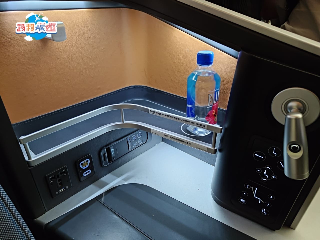 座位旁邊會有一個置物空間,個人的電子設備、護照、機票等隨身小物都能放在這裡