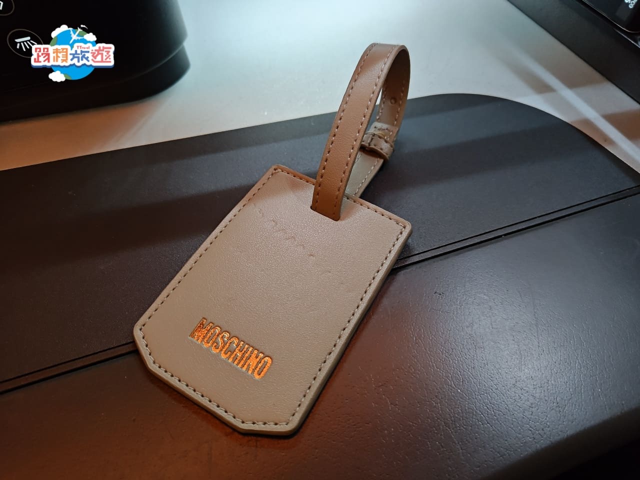 這次拿到的是與「MOSCHINO」聯名的過夜包,裡面提供的物品滿齊全的