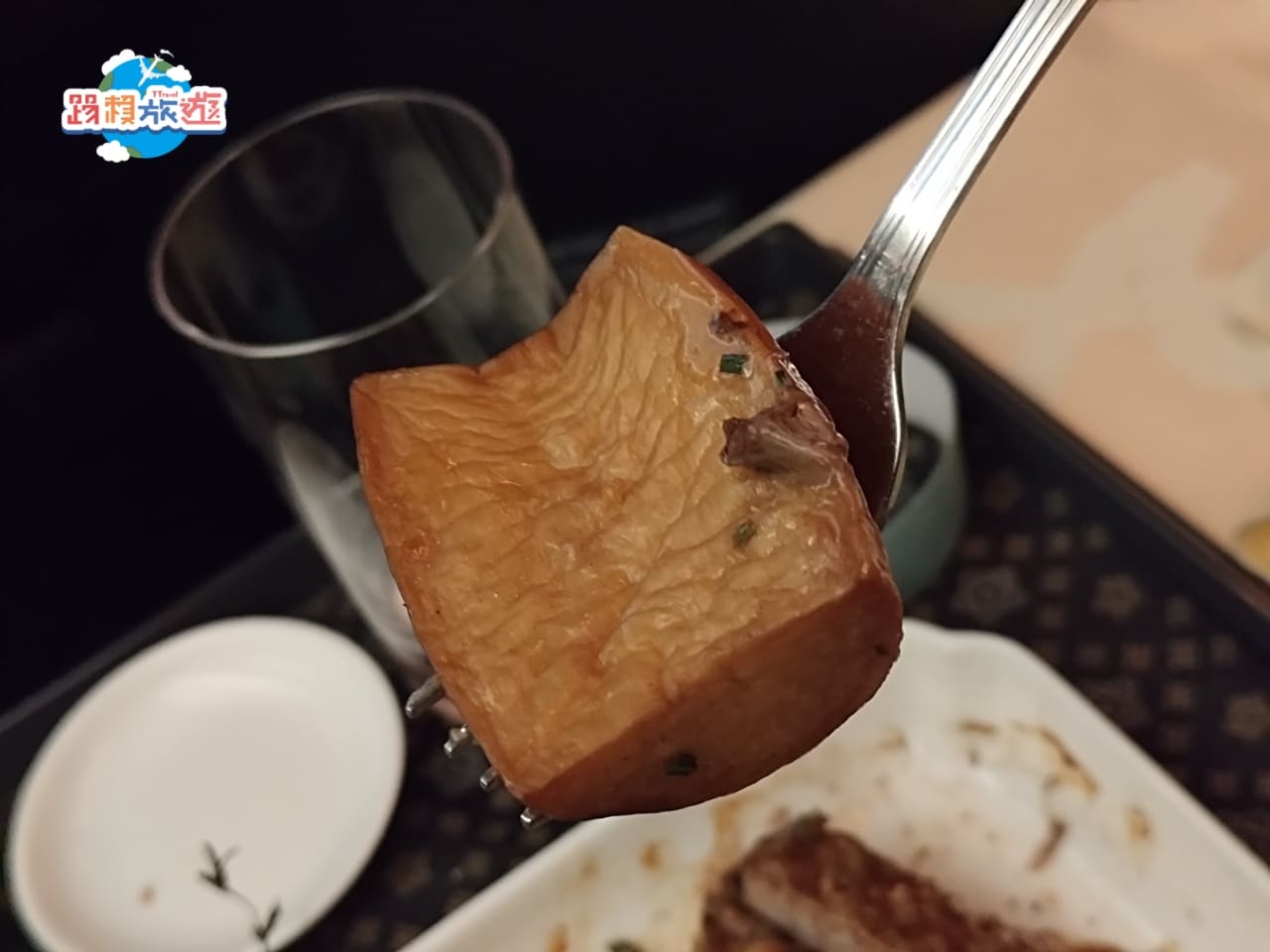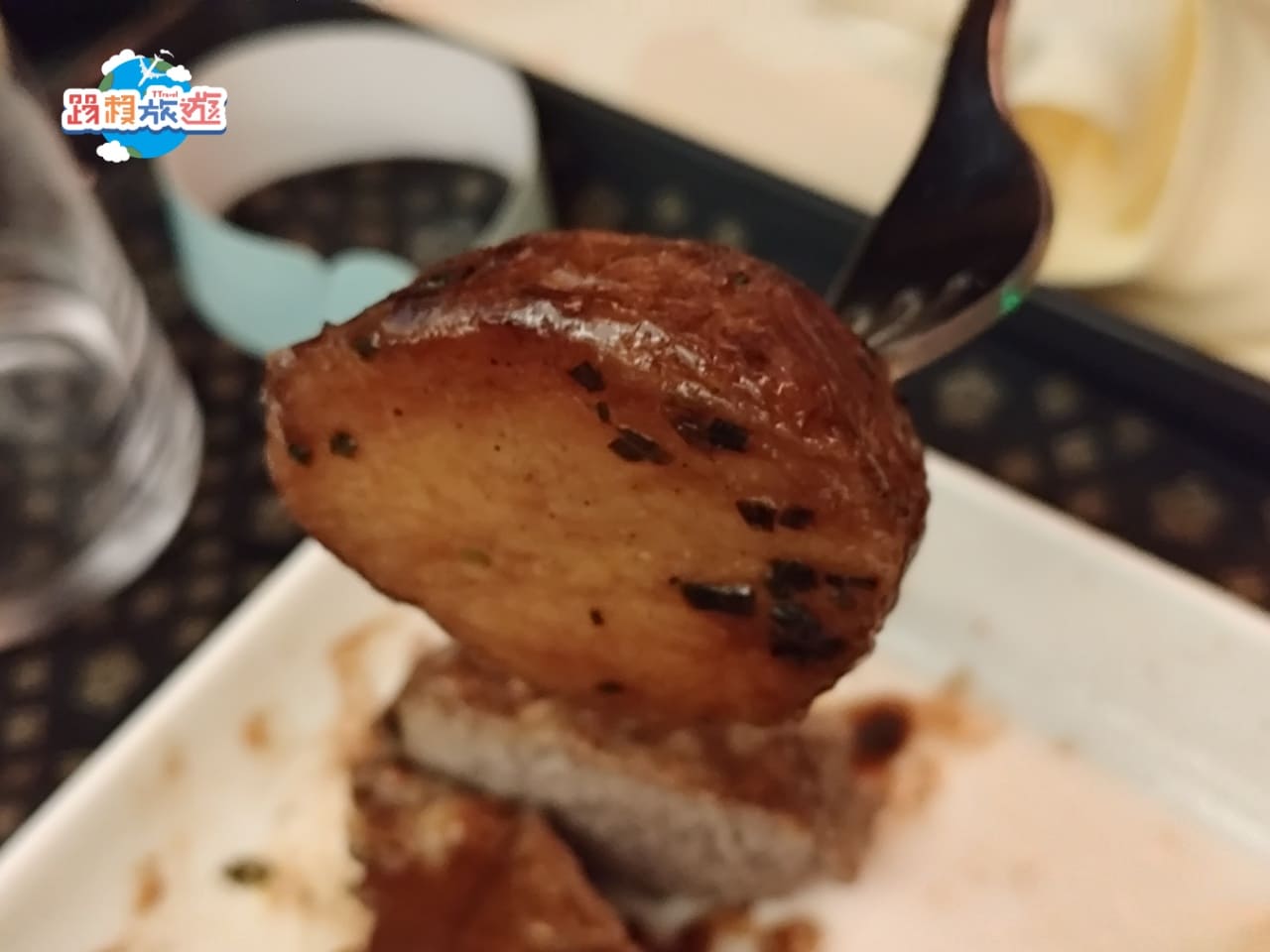 「馬鈴薯」切一半吸飽醬汁吃非常涮嘴,雖然多汁但依舊能感受到熱騰騰馬鈴薯綿密的口感