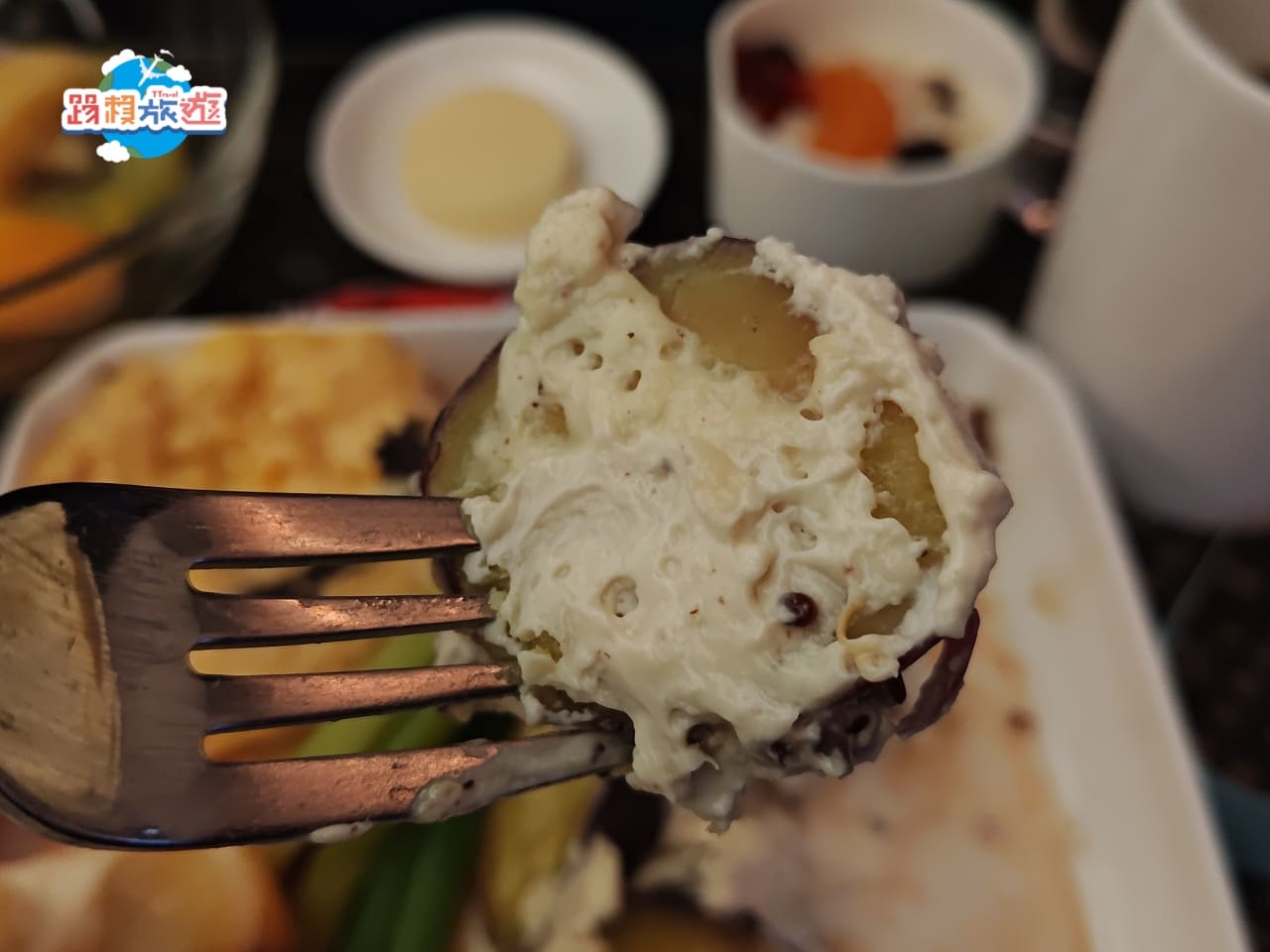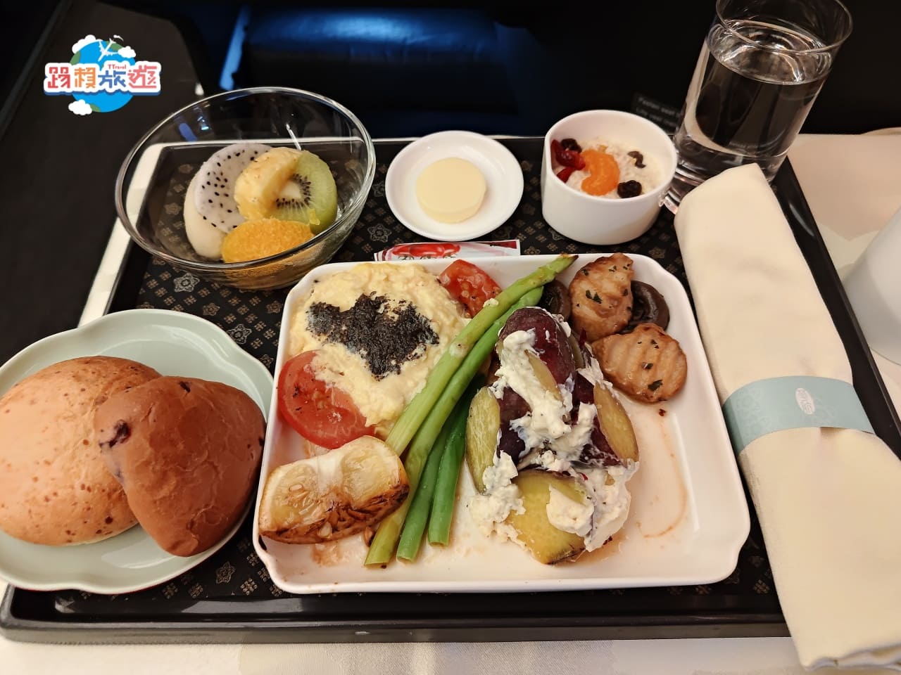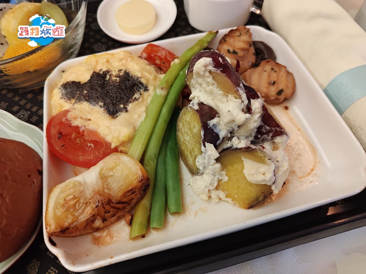早餐選擇的是「松露炒蛋佐鹽焗紅地瓜與奶油乳酪醬」,這道餐點是「小小樹食」聯名的西式套餐,在晚餐大魚大肉後早餐吃點健康的素食套餐