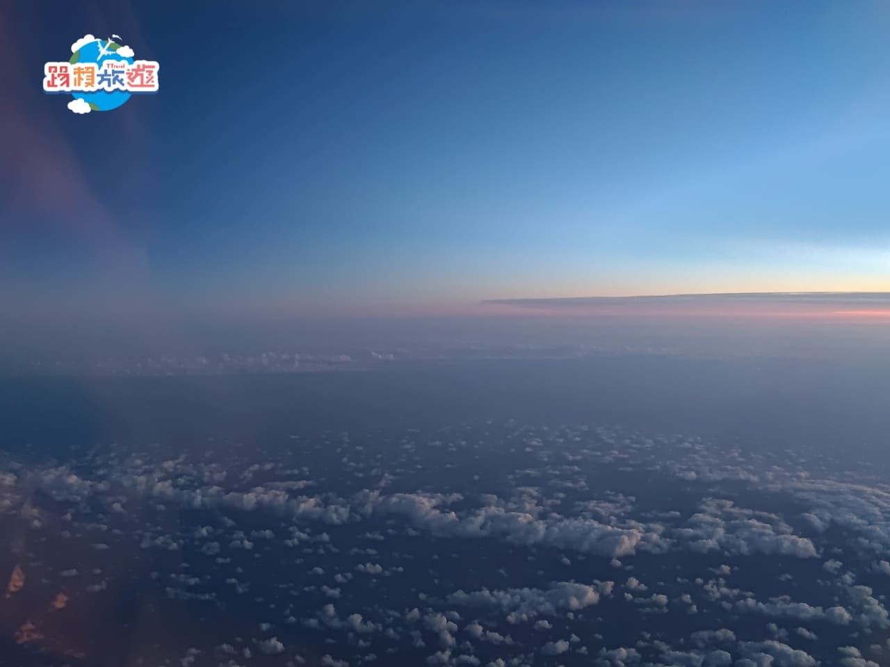 享用早餐的時候太陽的曙光慢慢地出現,因為在高空中可以清楚看到雲層逐漸變成橘紅色
