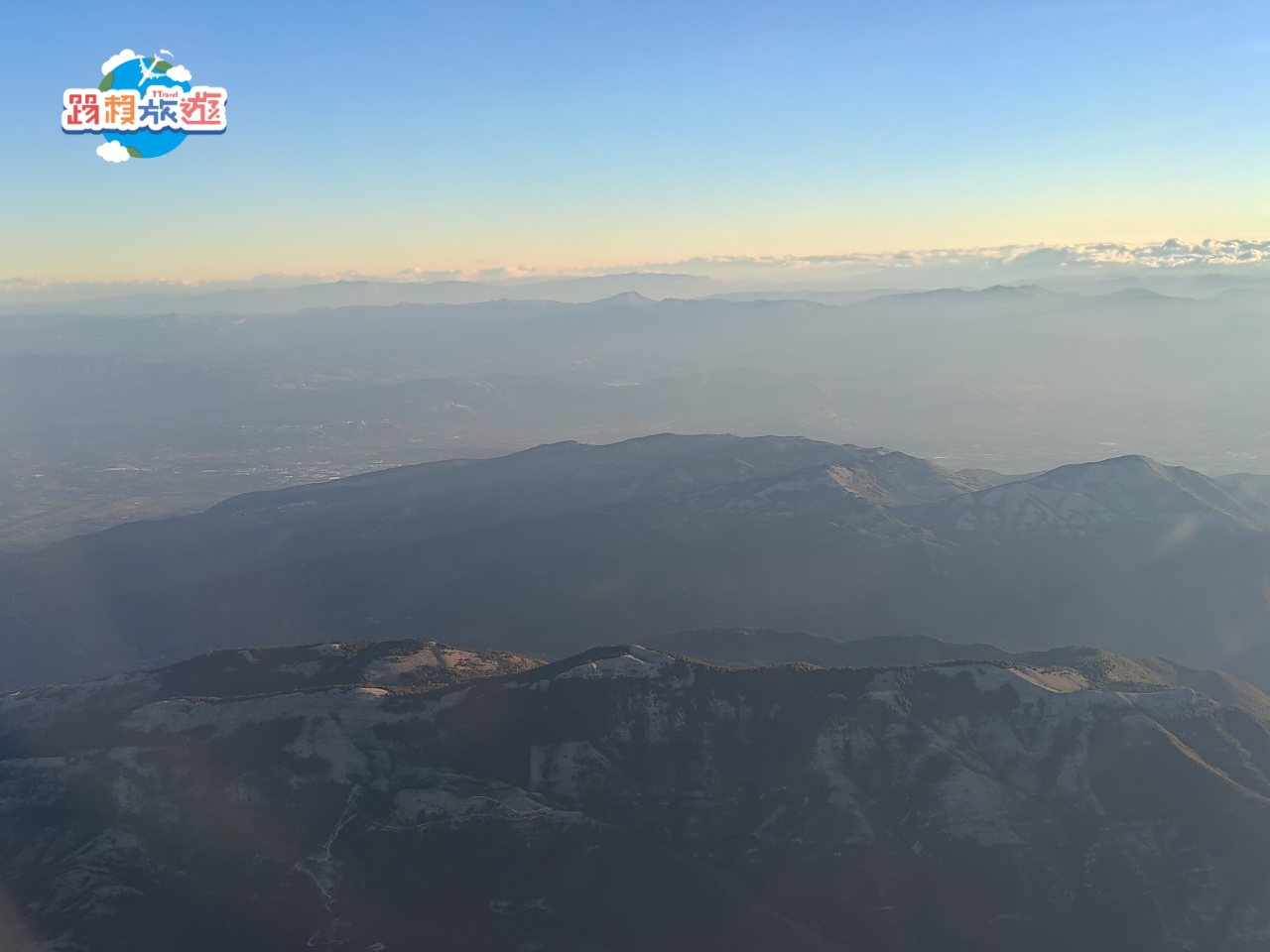 遠遠眺望的山峰十分壯觀,上面還有許多積雪,從飛機上能一次俯瞰群峰繚繞