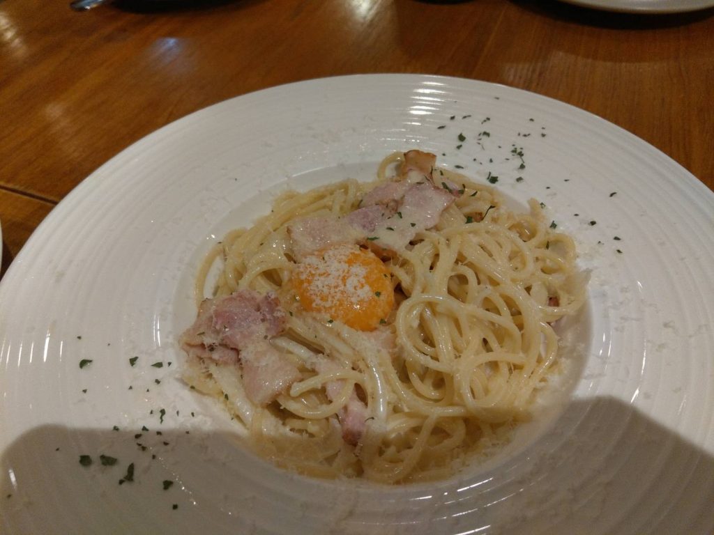 另一道義大利麵是「蛋黃醬厚切培根義大利麵」