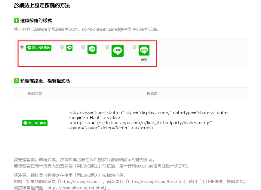接著就是動態網站上的按鈕方法,官方都說明得很詳細,可以選擇自己要的樣式