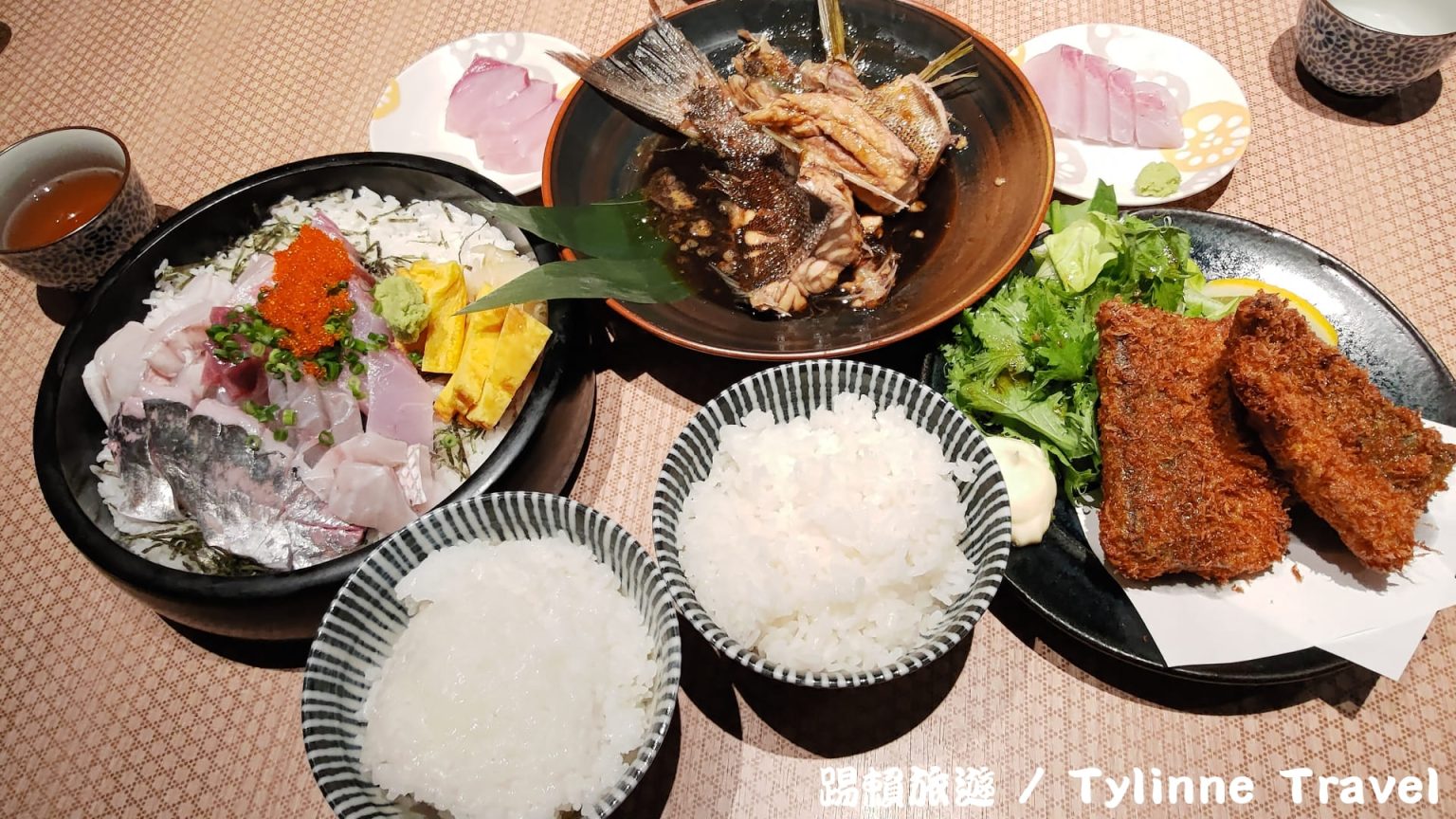 餐點是一次全部上來,我們就是依照店員介紹直接散壽司,當天新鮮的炸魚、煮魚個來一份,白飯一定也是要點一下的,因為日本米吃起來Q彈飽滿、粒粒分明