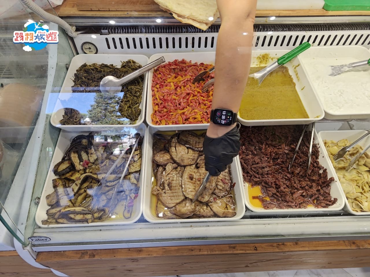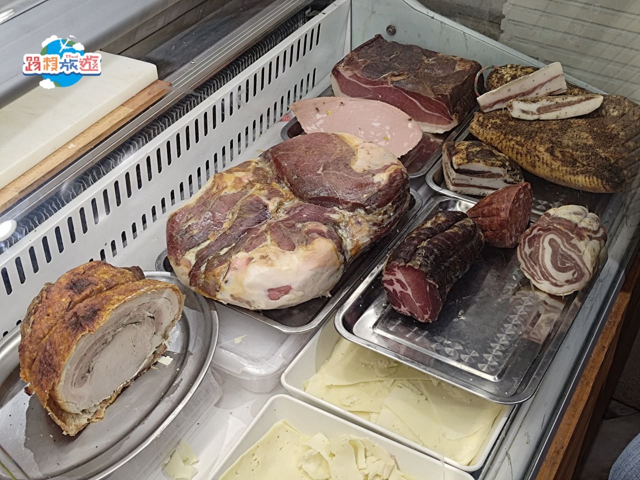 最吸引我目光的,是櫃台前方透明櫥窗內,擺放著琳琅滿目的新鮮食材,油油亮亮的義式火腿、各式各樣的配料及醬料