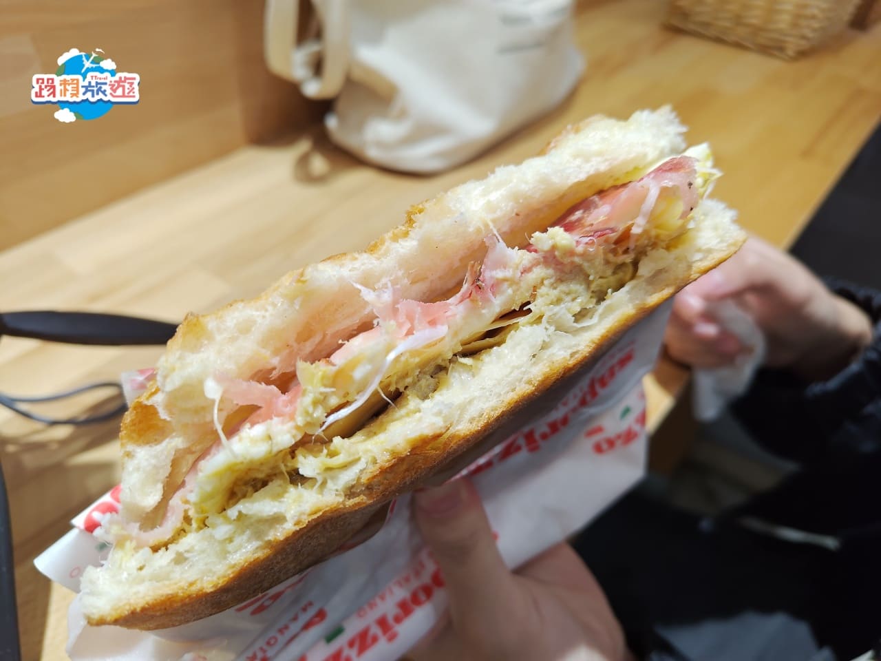 萬神殿的肉量相比會比較多,主要是使用史貝克煙燻火腿,鹹度高口味比較重但是搭配厚實的三明治麵包吃剛剛好,裡面使用的朝蘚薊奶油味道十分獨特,有一種濃厚香醇又滑順的口感,很適合來點酒一起搭配