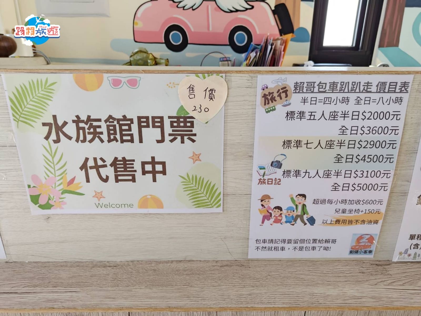 這裡還有代售水族館的門票,以及提供包車的服務,因為老闆說以前是做旅行社的加上又是澎湖人,對這裡的所有地方都非常熟悉,如果不知道怎麼安排也不想租車,推薦可以直接詢問老闆一條龍的服務