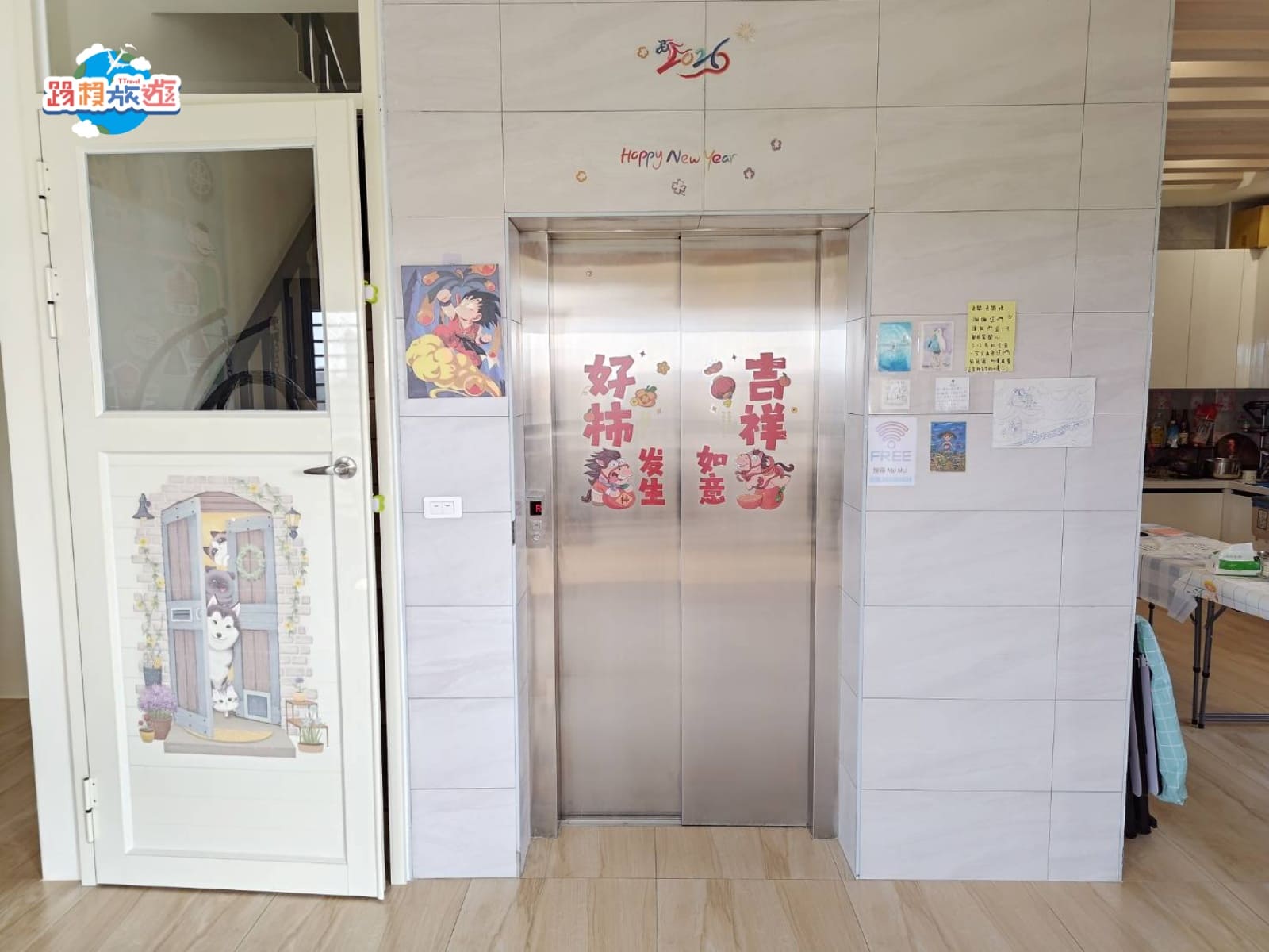 中間最吸引我注意的就是這間民宿內居然有「電梯」! 只能說老闆真的是大手筆,雖然民宿客房樓只有三樓,依舊把電梯搬進來,讓房客完全不用花力氣把行李台上去,而且有趣的是當天老闆跟我們介紹房間後,我們搭電梯下來老闆是走樓梯下來,完全就是把客人當主人一樣的概念XD