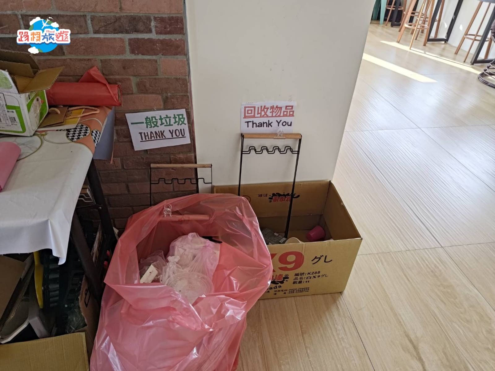 靠近大廳的牆角是垃圾分類區,老闆每天都會固定整理垃圾,所以不用擔心會有異味