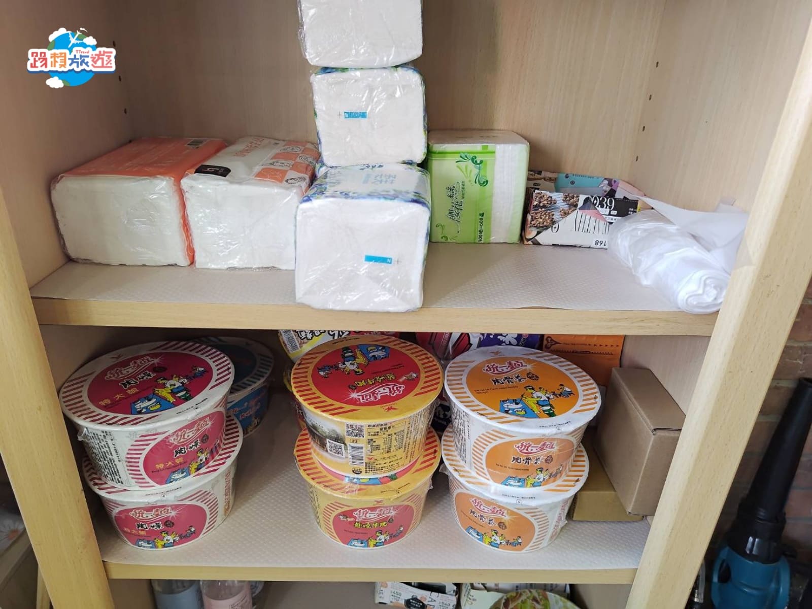 角落有一個小零食櫃,上面有各種小點心,下方的櫃子有泡麵和衛生紙,全部都是自由取用,加上民宿不是在市區內如果晚上肚子餓就可以泡泡麵當宵夜吃