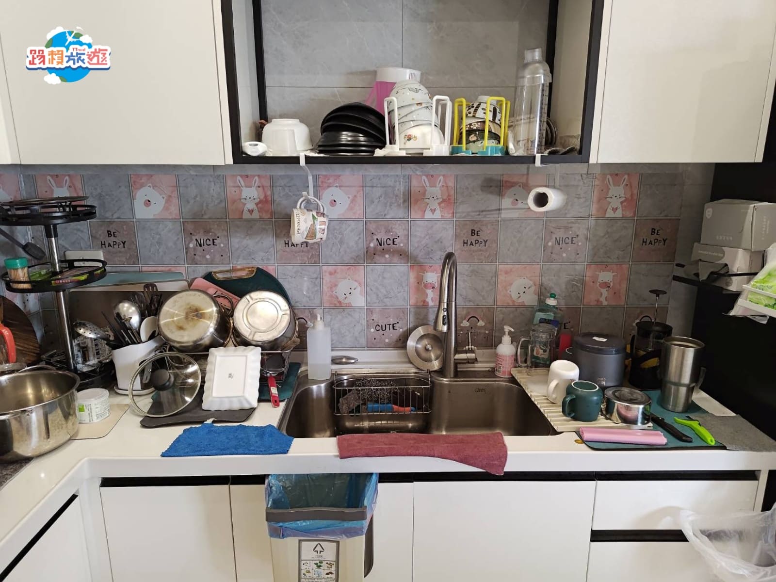 廚房主要是L型的設計,幾乎所有的鍋碗瓢盆全部都有,使用完畢記得要清洗乾淨