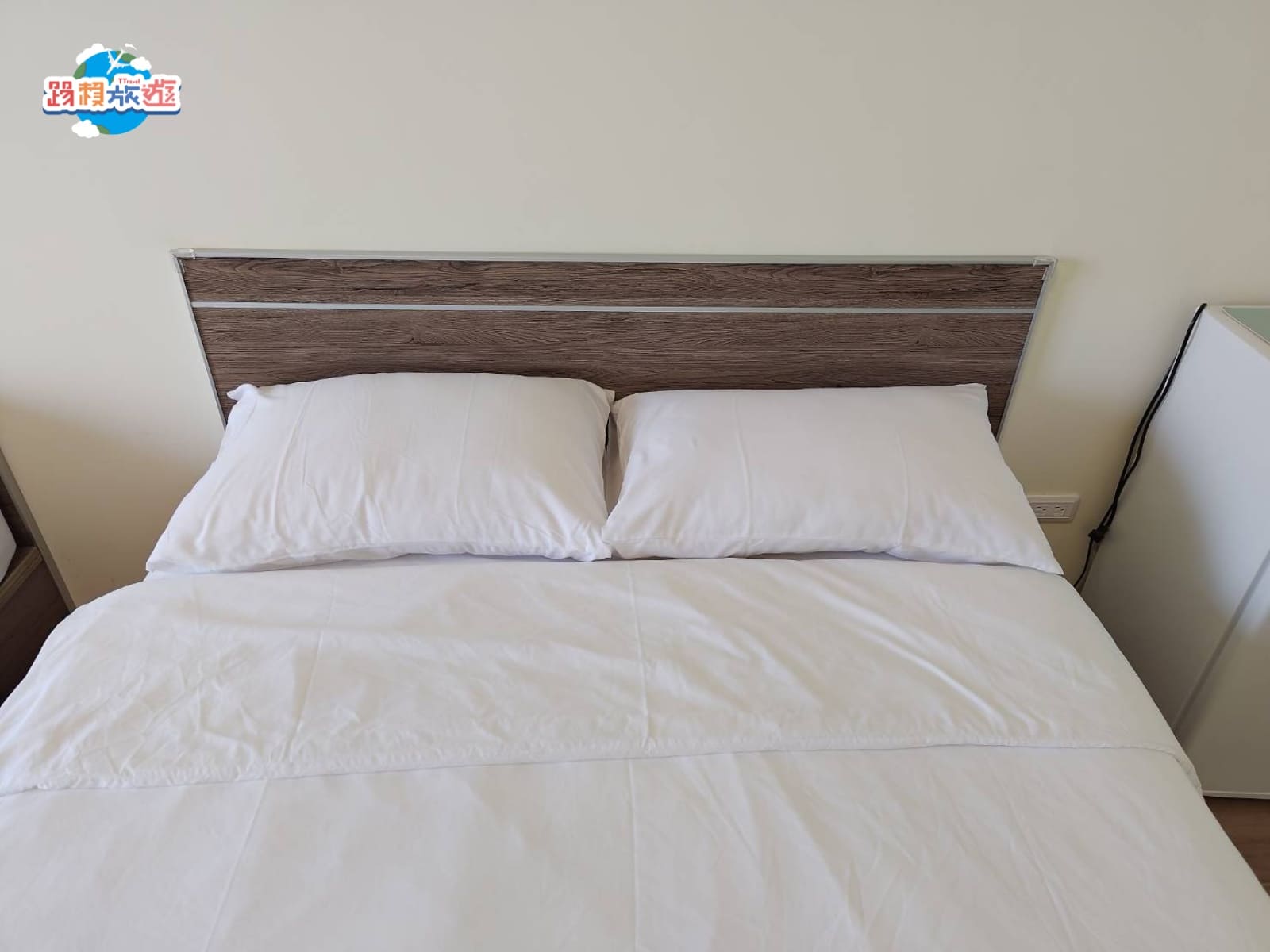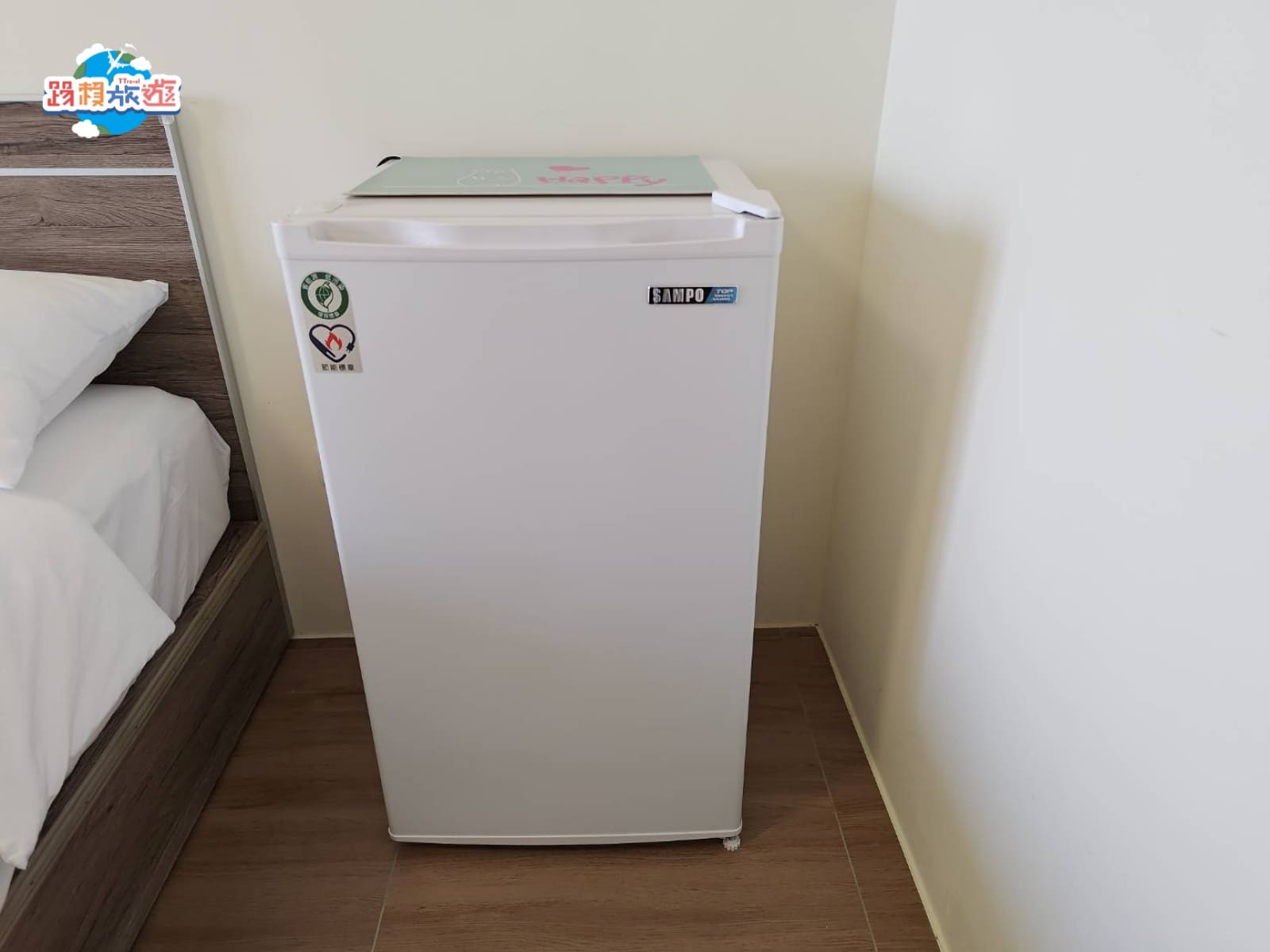 床的旁邊是冰箱大小比一般民宿或是飯店提供的還要再大台一點