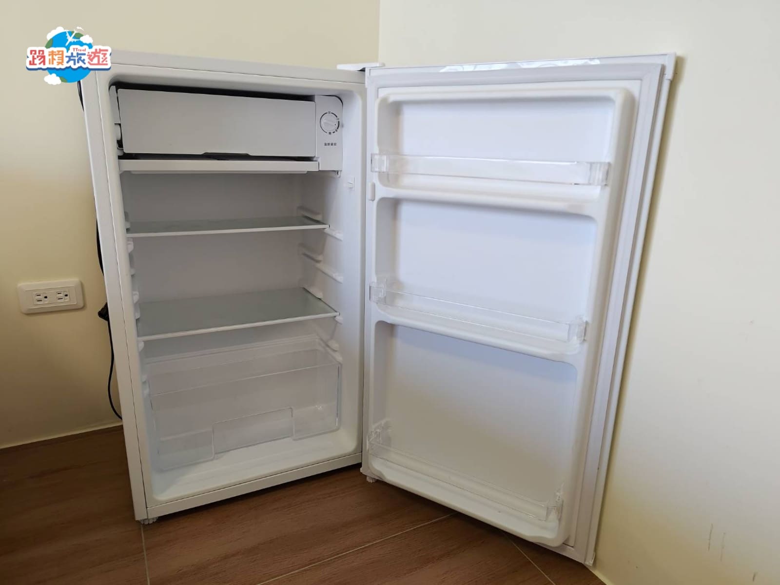 冰箱裡面是乾淨淨空的狀態,容量可以放下不少食物和飲料