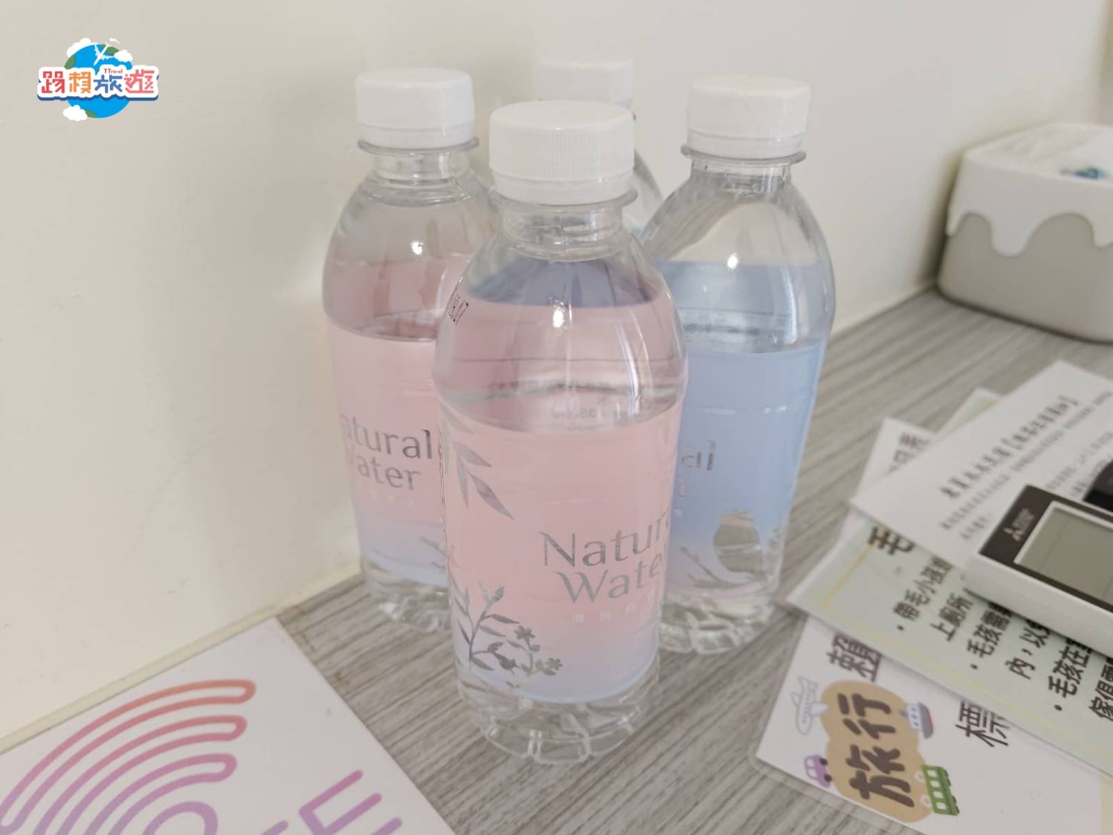 桌上還有擺礦泉水,如果水喝完可以去一樓廚房飲水機裝水,或是也有多的礦泉水可以取用