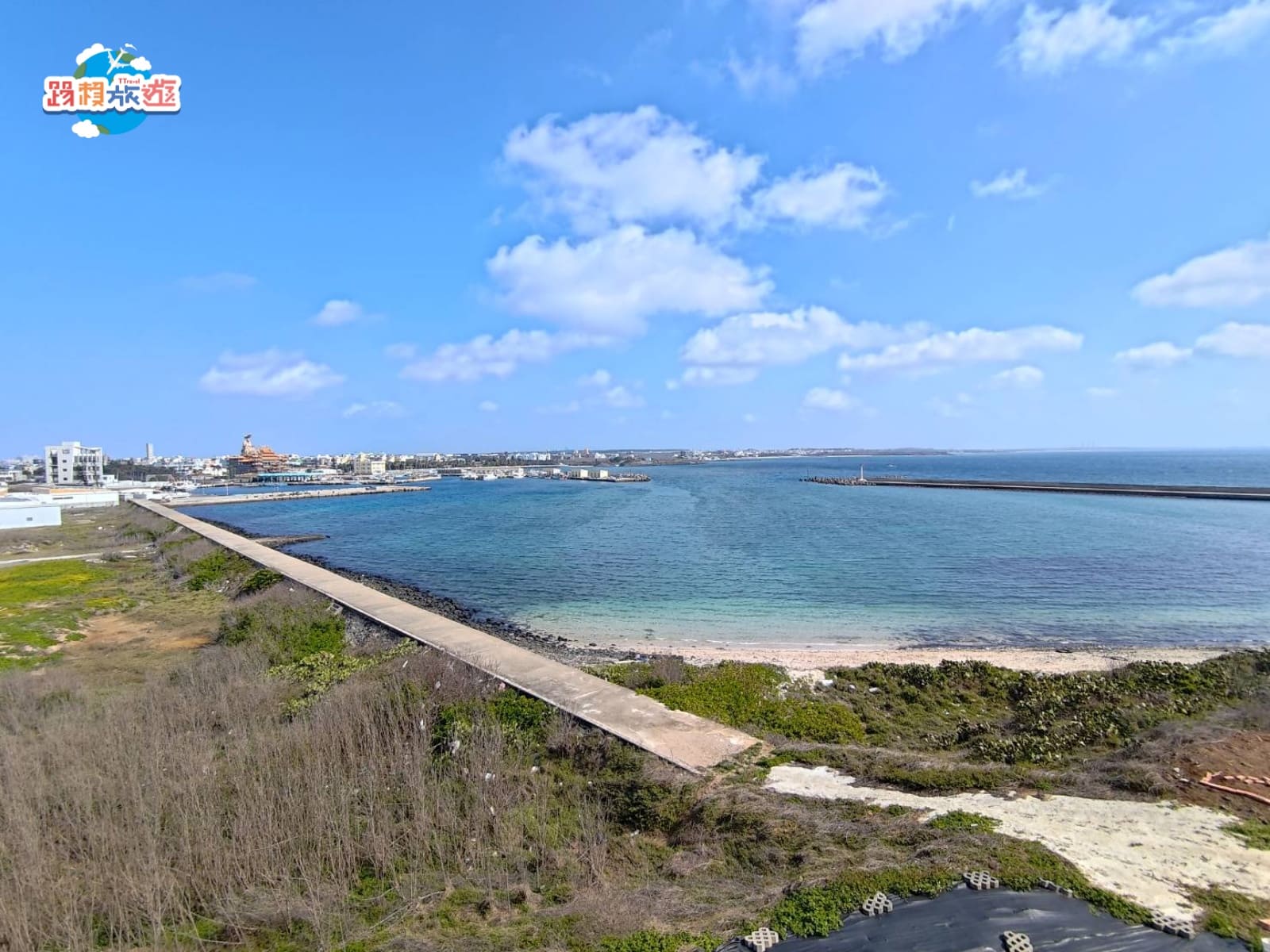 第二天早晨的天氣十分晴朗,沒有太多的雲層視野更加遼闊,而且澎湖的海非常漂亮,顏色清澈透亮不會有混濁感,老闆說夏天還可以走下去看海參,就像是一個小型的露天水族館