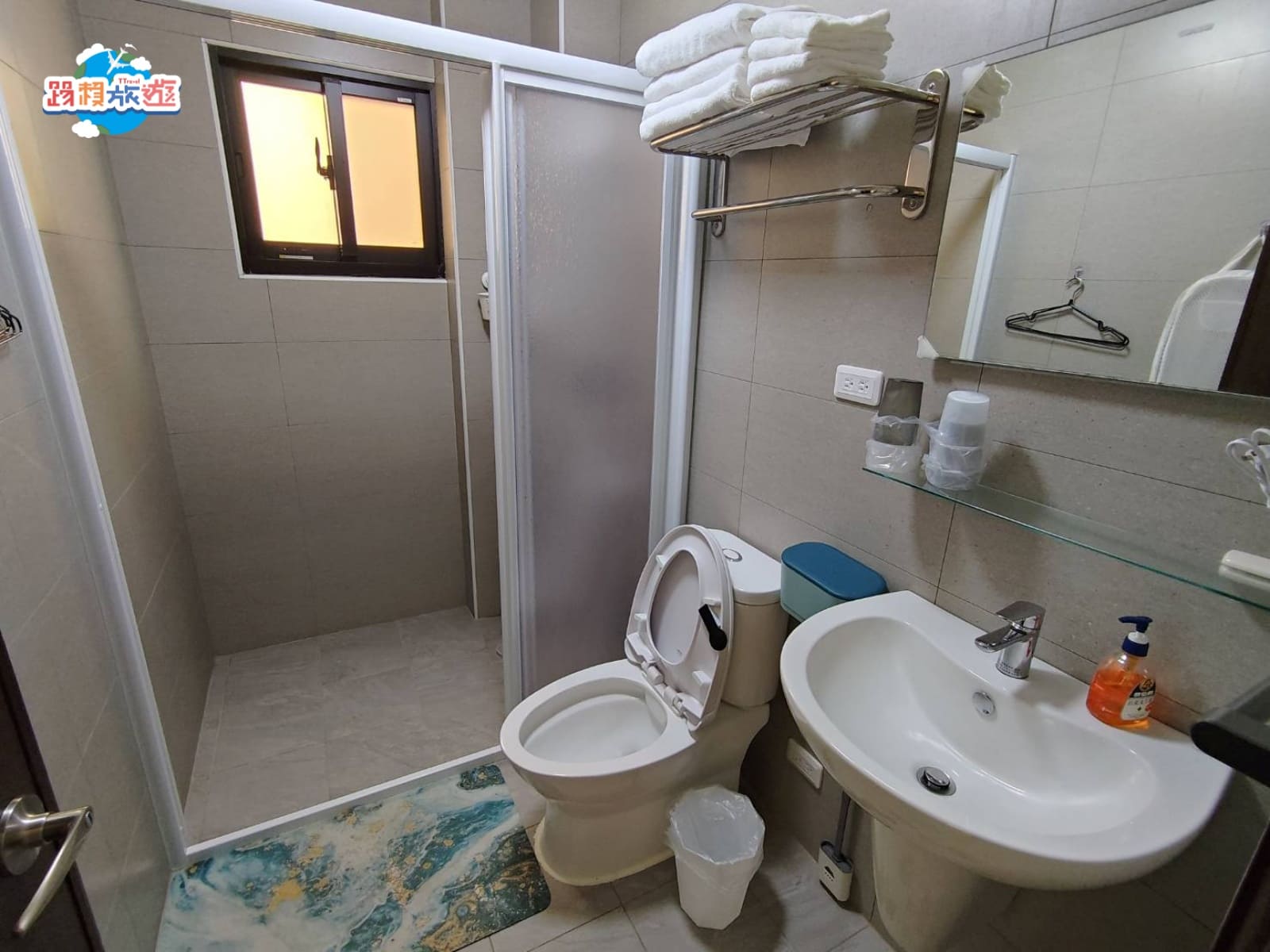 毛巾和浴巾放在馬桶上的鐵架上,不過我個人都還是會習慣帶一條毛巾來使用