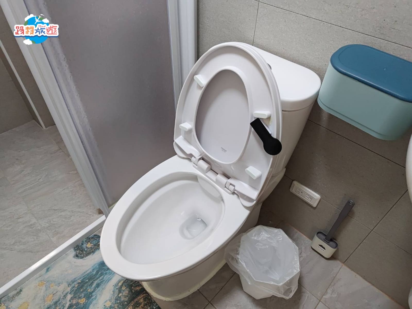 馬桶的整潔保持非常好,還有注意到馬桶蓋下有一個黑色的板子,把馬桶蓋放下來後才知道是可以協助掀開的小工具,這點是真的滿貼心的