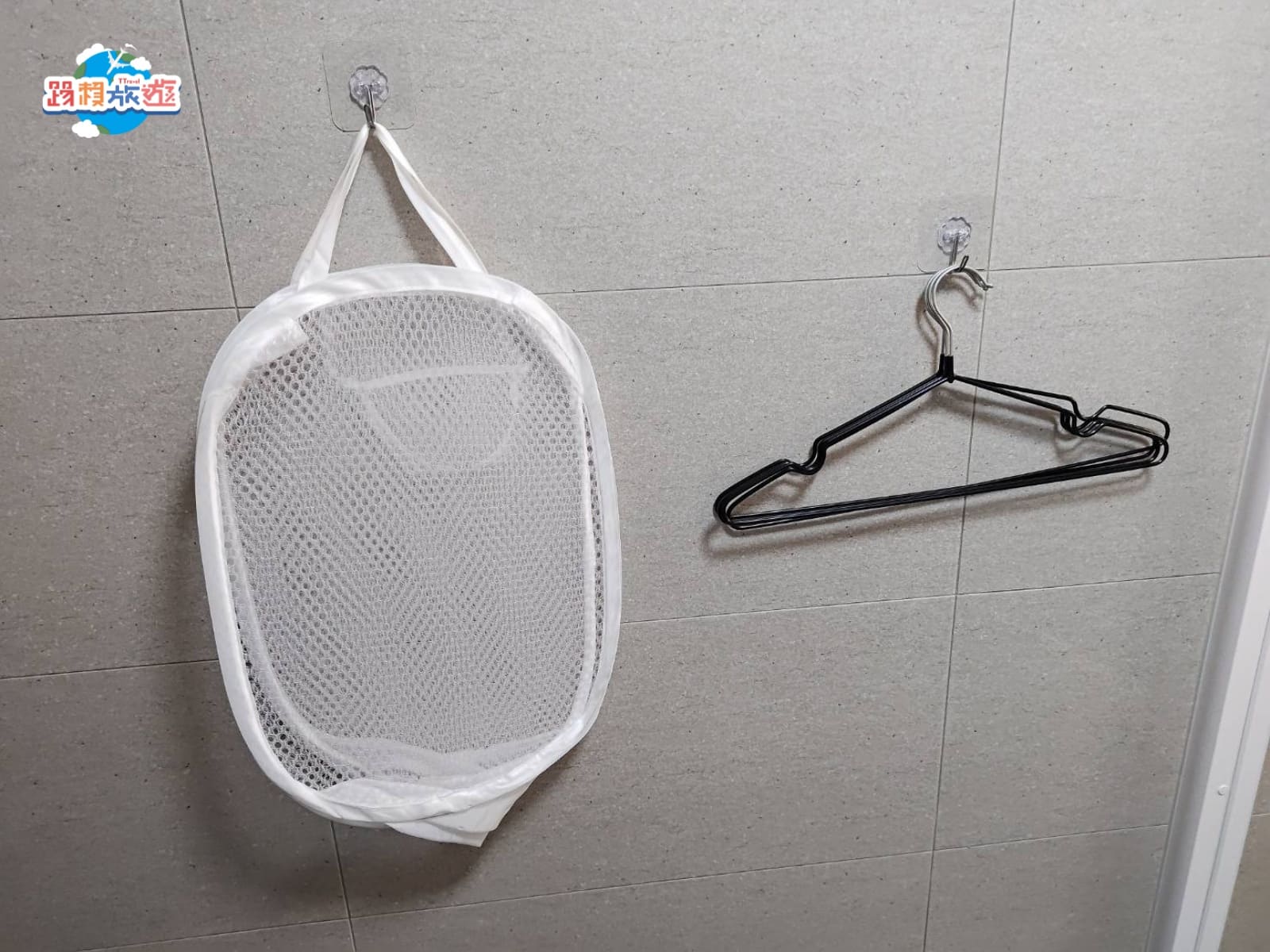 牆上有防水袋和衣架可以使用,如果是有洗衣服也是可以掛在浴室裡面晾乾