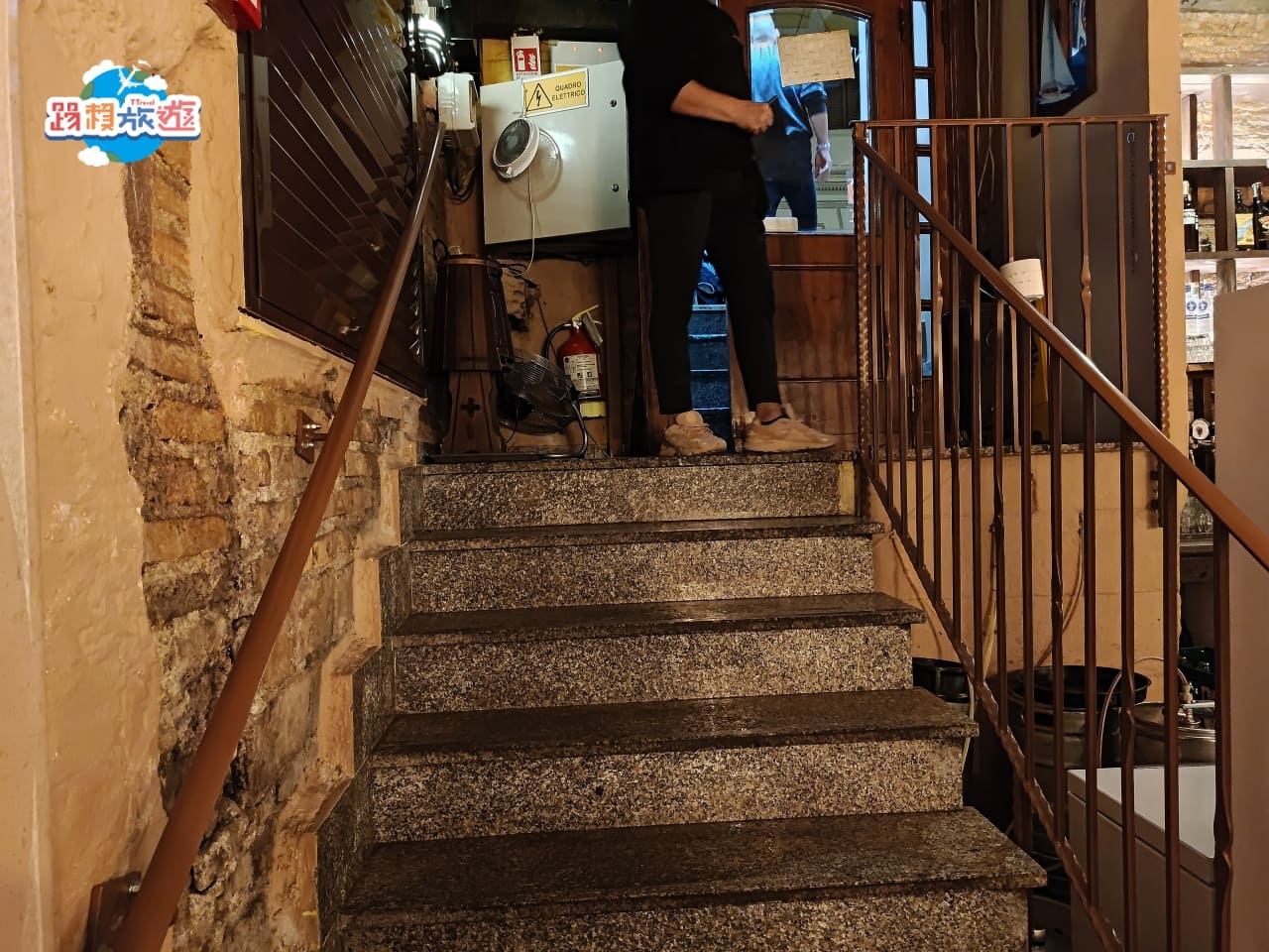 因為餐廳的座位區是在地下室,一進門就會先從樓梯往下走,首先映入眼簾的是那充滿歷史感的裝潢,木質桌椅、牆上和天花板充滿羅馬風情的設計,搭配柔和的燈光,營造出一種既傳統又溫馨的氛圍。