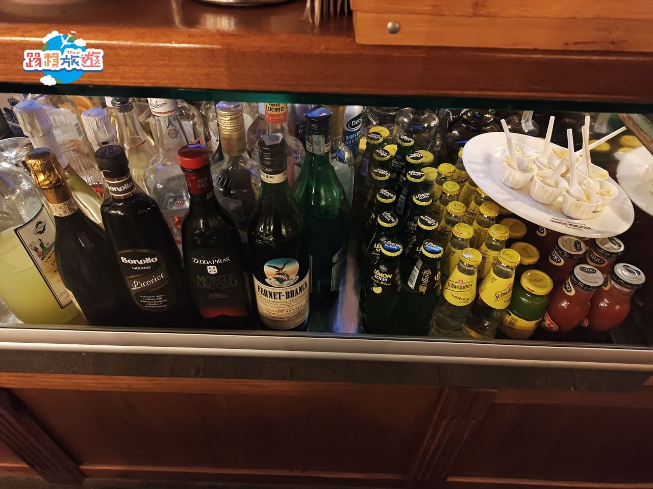 靠近門口的區域有各式甜點以及酒水飲品,不過第一天晚餐沒有點酒類來喝,還是以水為主
