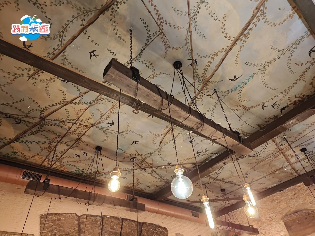 天花板的設計滿特別的,燈是用木頭吊起來有種歐式庭園的感覺,即便現在是一個發達的城市,但依舊保有傳統的氛圍感