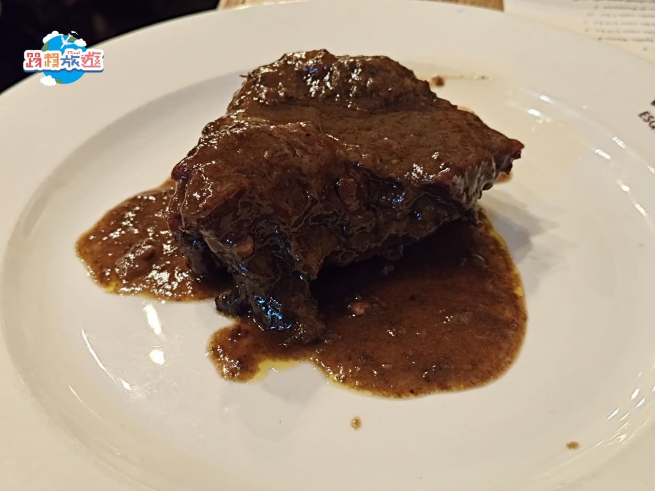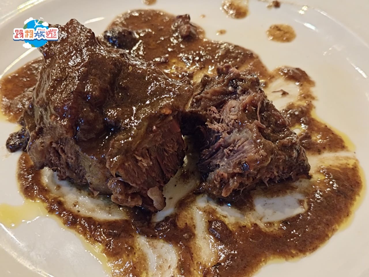 這道紅酒燉牛臉頰肉,是我們在羅馬吃過最令人印象深刻的燉肉料理之一。上桌時牛臉頰肉呈現誘人的深褐色,搭配濃郁的醬汁。用叉子輕輕一碰,肉質就輕易地分離,入口更是驚豔!