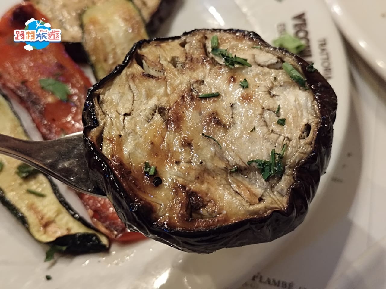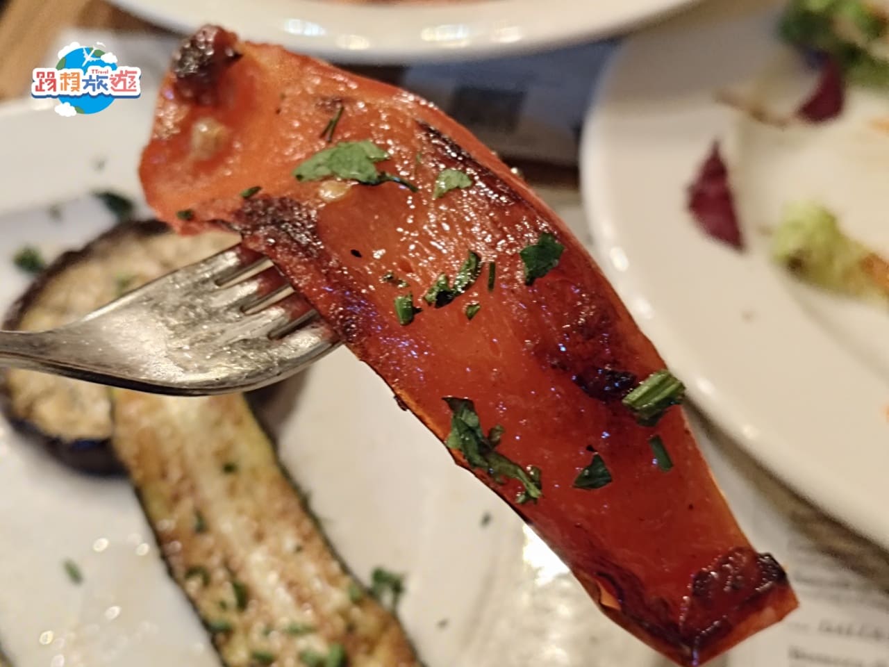 裡面一共有三種蔬菜,分別是「茄子」、「紅椒」和「櫛瓜」,每一種都將食材的甜味完整的保留下來,是一道看似簡單卻充滿細節的美味